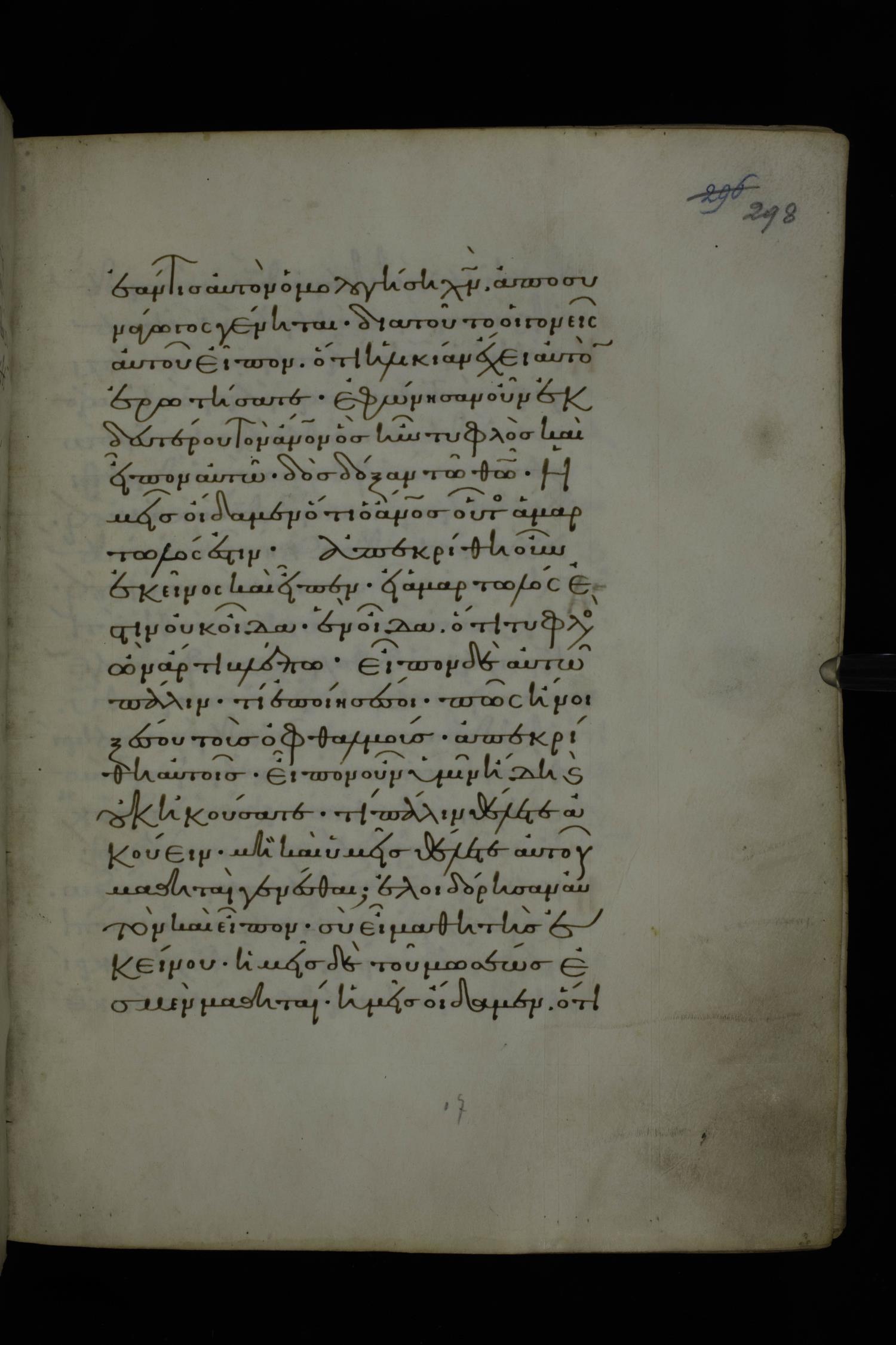 Eleventh century minuscule of Gospels on parchment; 370 leaves, 1 column, 20 lines per column. Images were taken at the National Library of Greece in Athens.