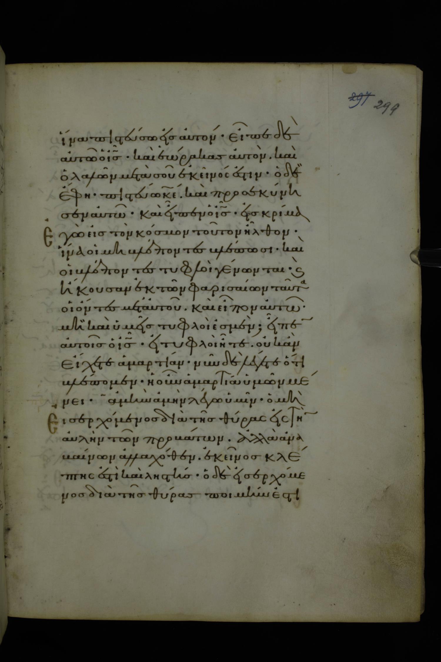 Eleventh century minuscule of Gospels on parchment; 370 leaves, 1 column, 20 lines per column. Images were taken at the National Library of Greece in Athens.