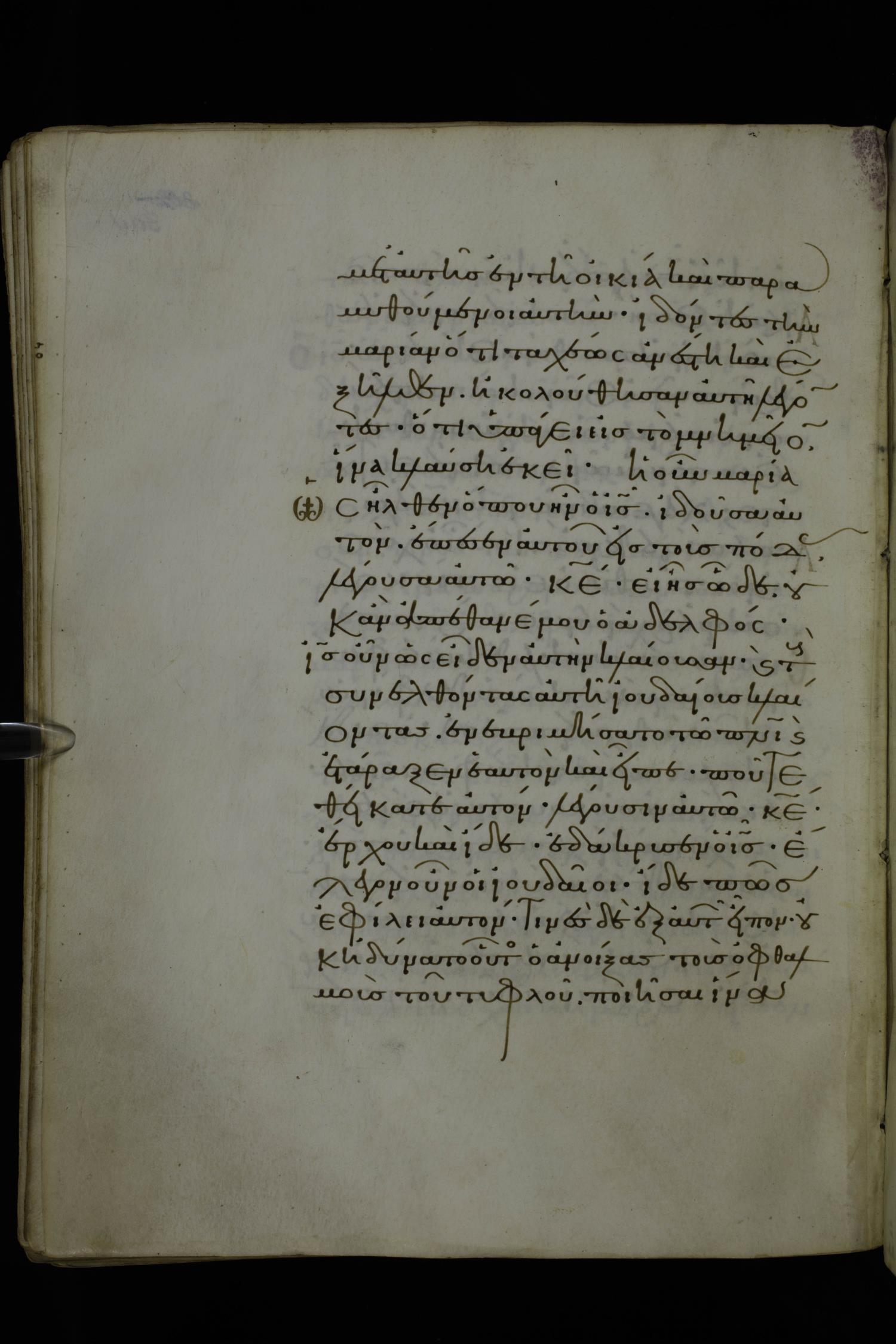 Eleventh century minuscule of Gospels on parchment; 370 leaves, 1 column, 20 lines per column. Images were taken at the National Library of Greece in Athens.