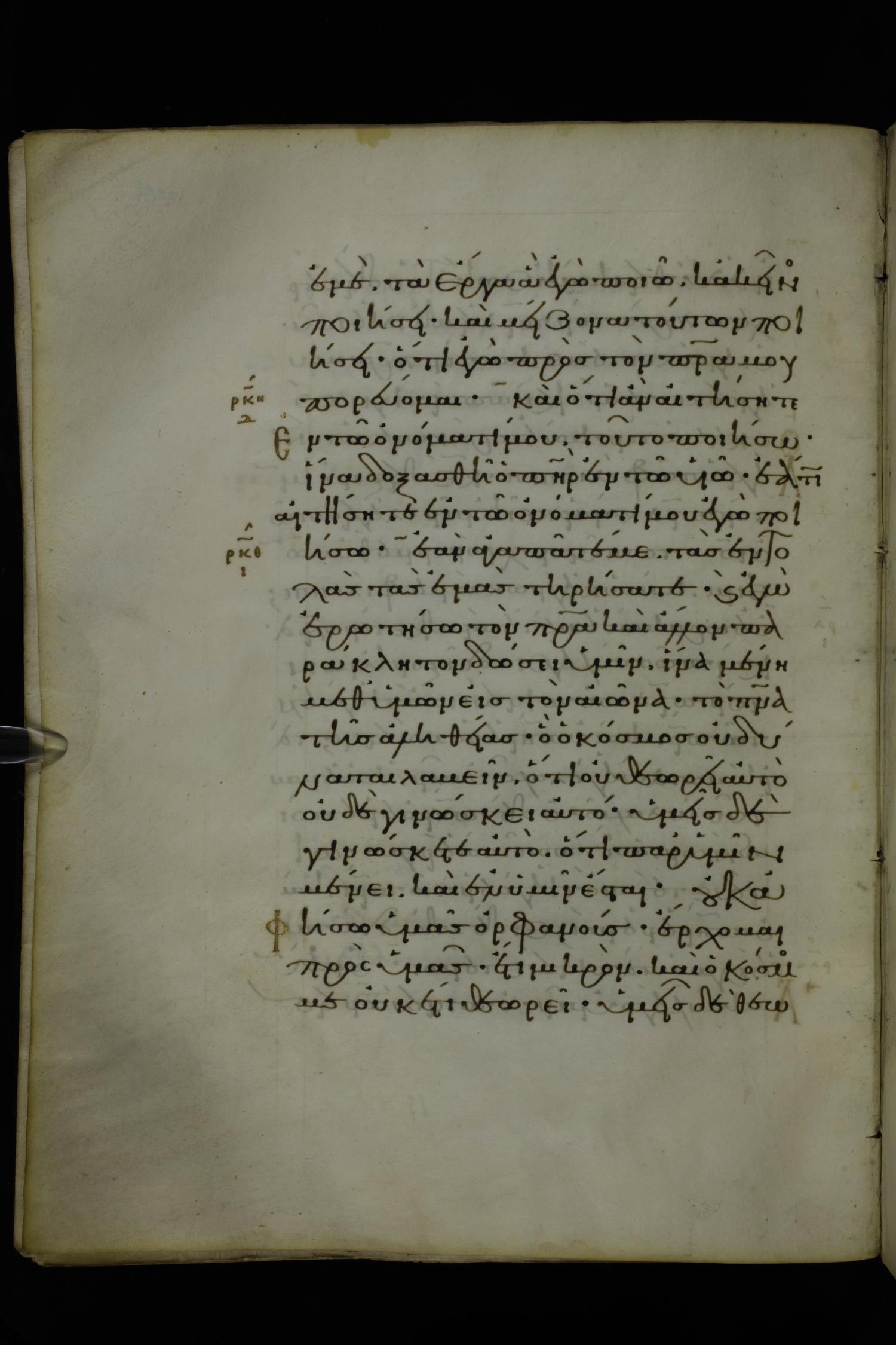 Eleventh century minuscule of Gospels on parchment; 370 leaves, 1 column, 20 lines per column. Images were taken at the National Library of Greece in Athens.