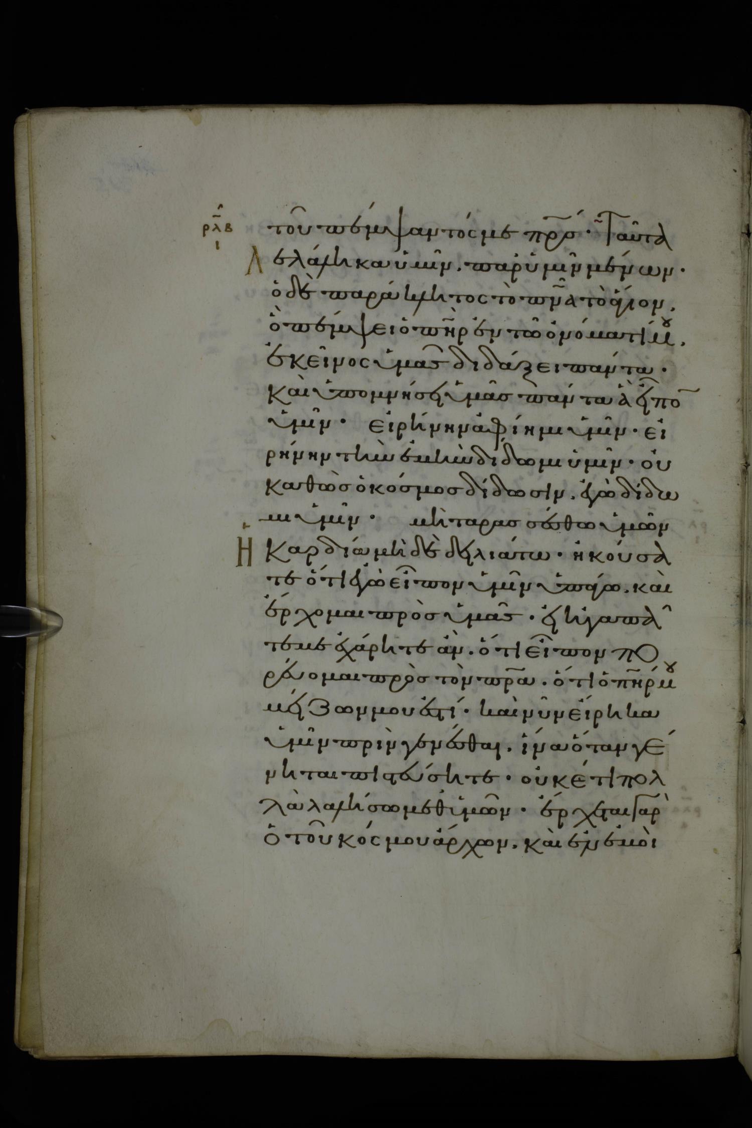 Eleventh century minuscule of Gospels on parchment; 370 leaves, 1 column, 20 lines per column. Images were taken at the National Library of Greece in Athens.