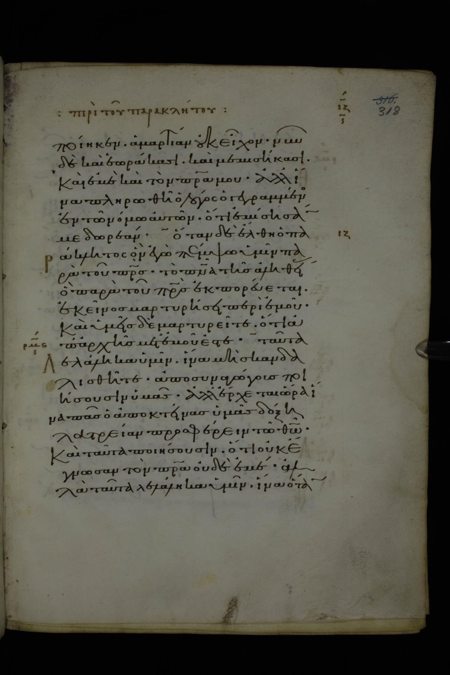 Eleventh century minuscule of Gospels on parchment; 370 leaves, 1 column, 20 lines per column. Images were taken at the National Library of Greece in Athens.
