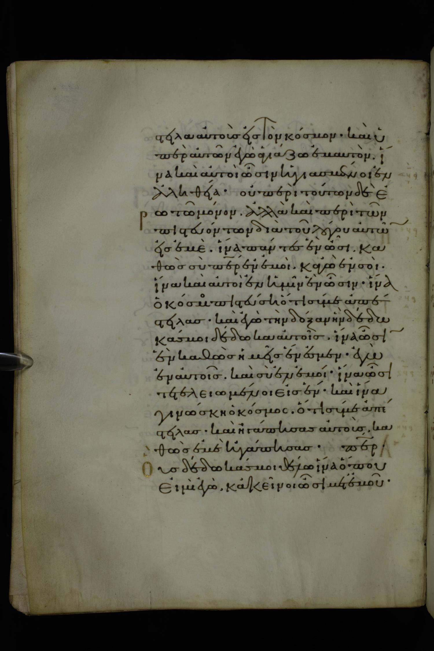 Eleventh century minuscule of Gospels on parchment; 370 leaves, 1 column, 20 lines per column. Images were taken at the National Library of Greece in Athens.