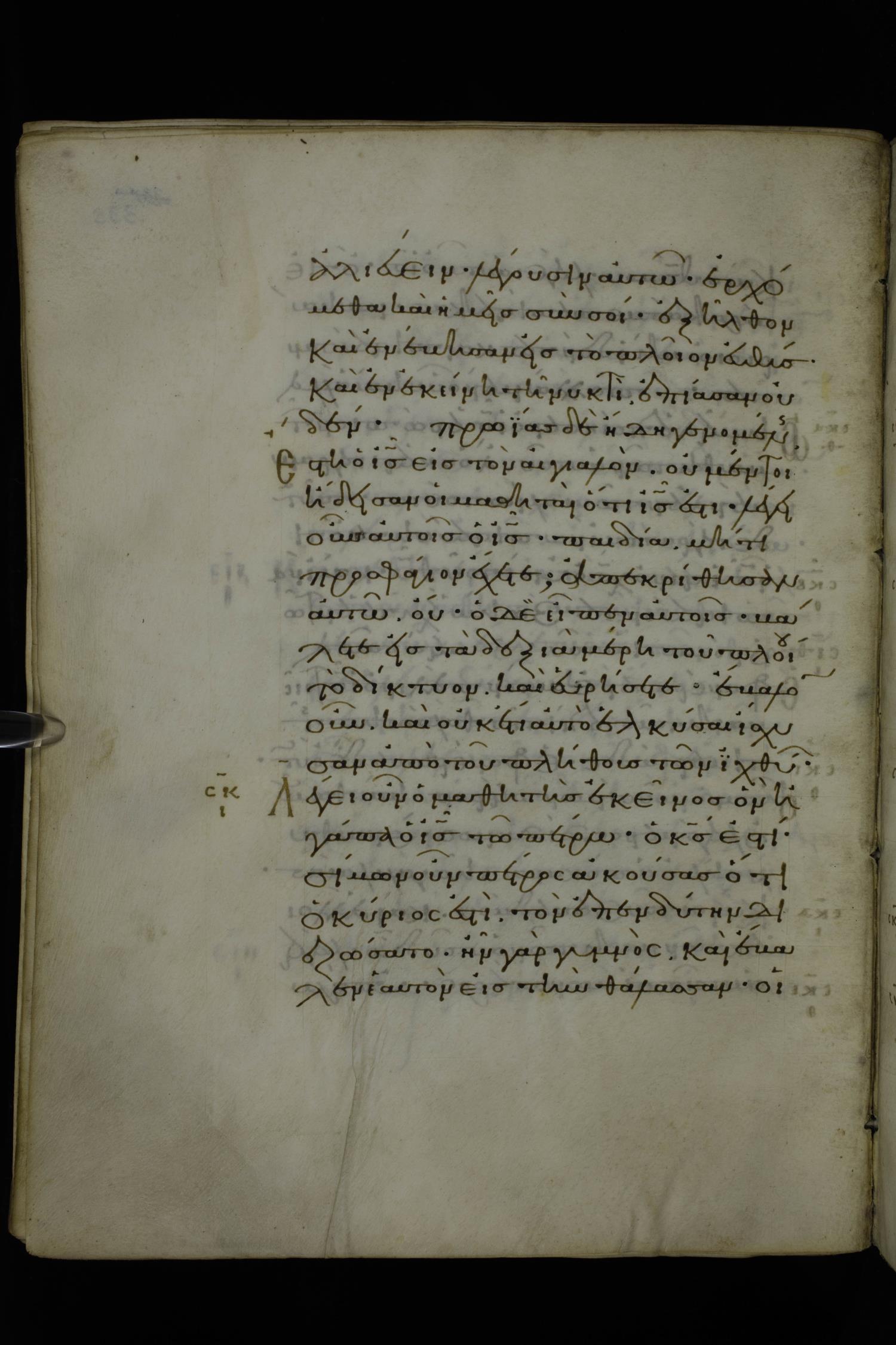 Eleventh century minuscule of Gospels on parchment; 370 leaves, 1 column, 20 lines per column. Images were taken at the National Library of Greece in Athens.