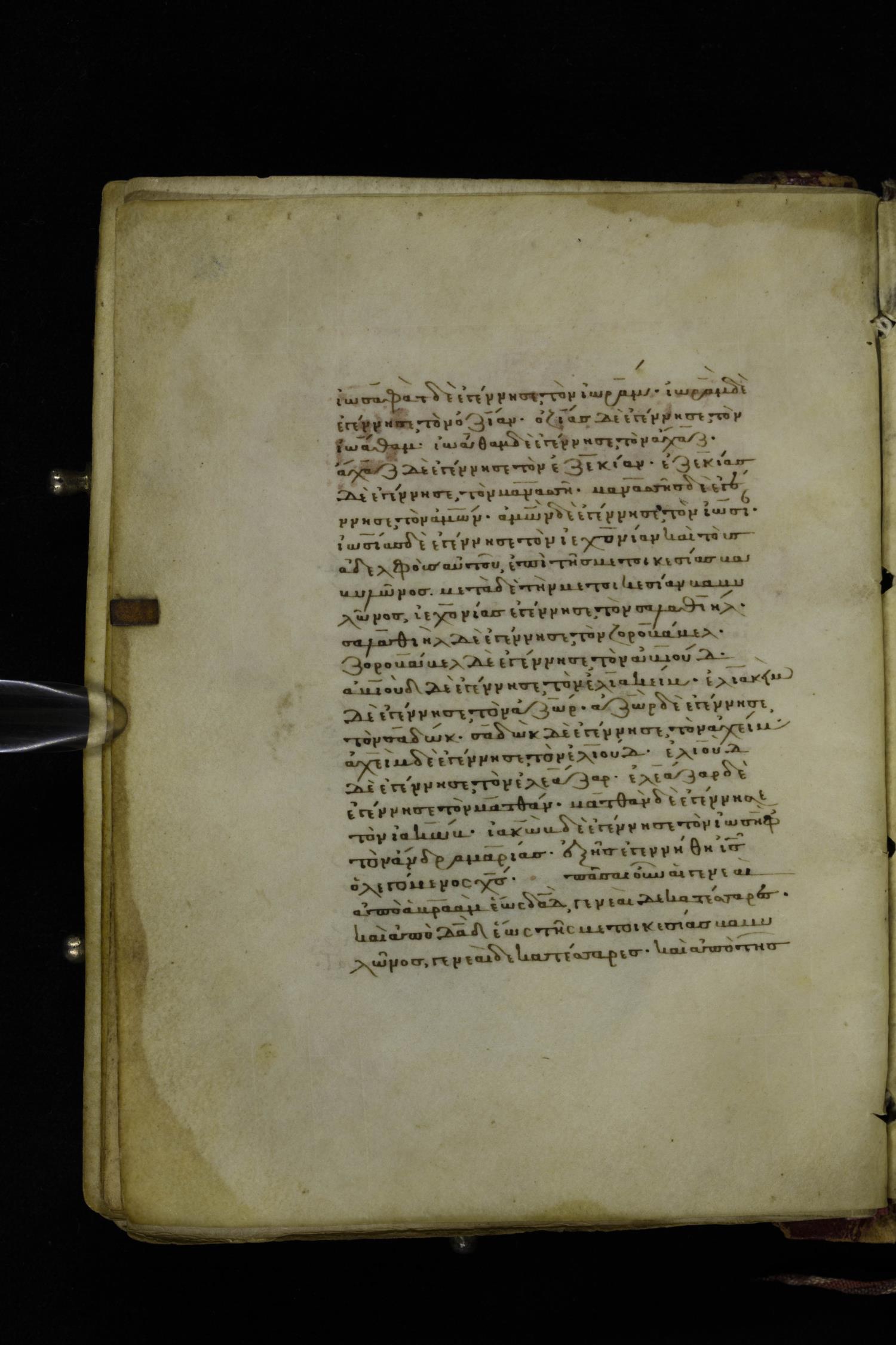 Ὀζείας / Ὀζίας δὲ ἐγέννησεν τὸν Ἰωαθάμ, Ἰωαθὰμ δὲ ἐγέννησεν τὸν Ἄχας / Ἀχάζ, Ἄχας / Ἀχὰζ δὲ ἐγέννησεν τὸν Ἑζεκίαν,
