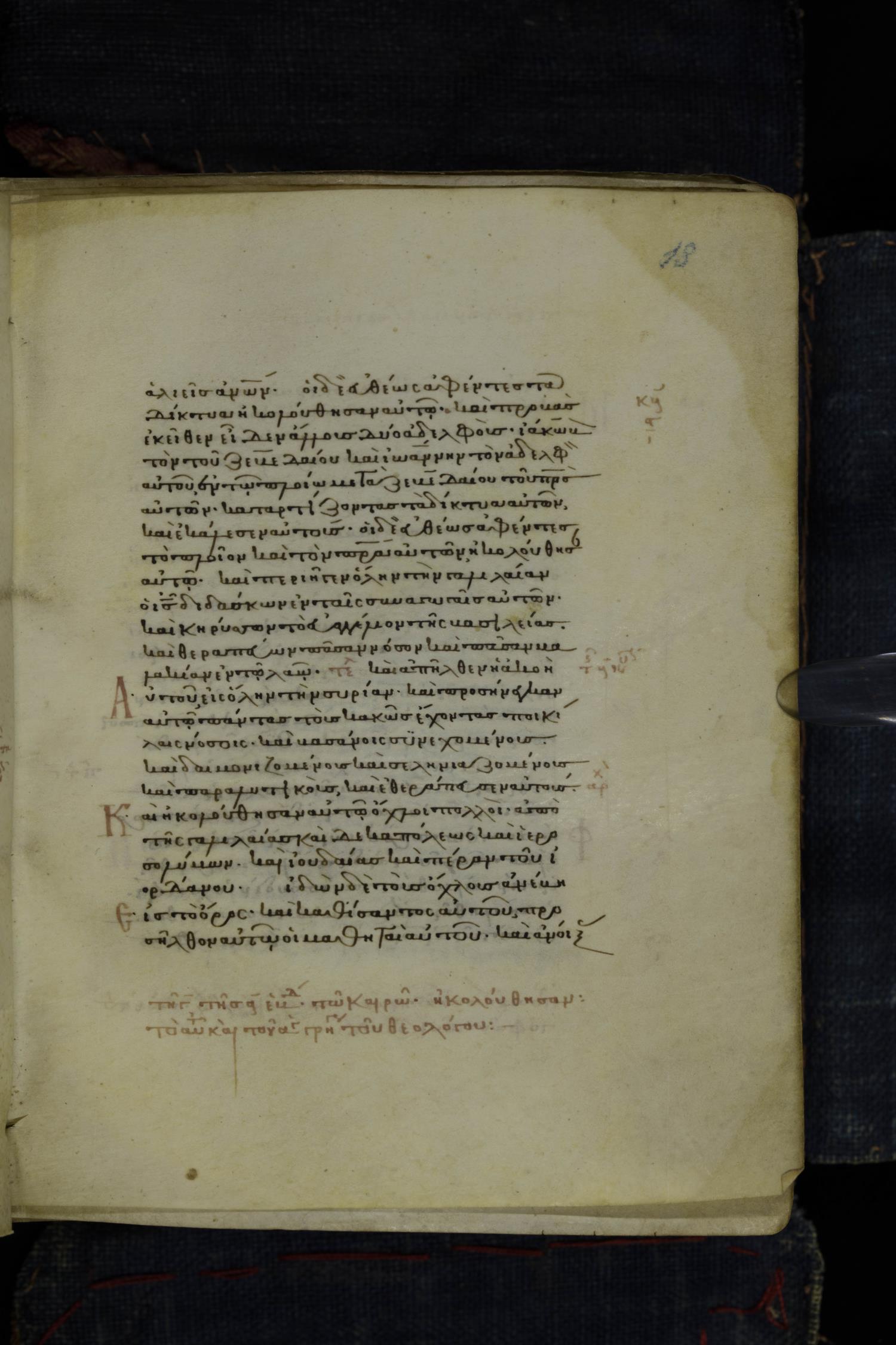 Thirteenth century minuscule of the Gospels on parchment; 223 leaves, 1 column, 24 lines per column. Images were taken at the National Library of Greece in Athens.