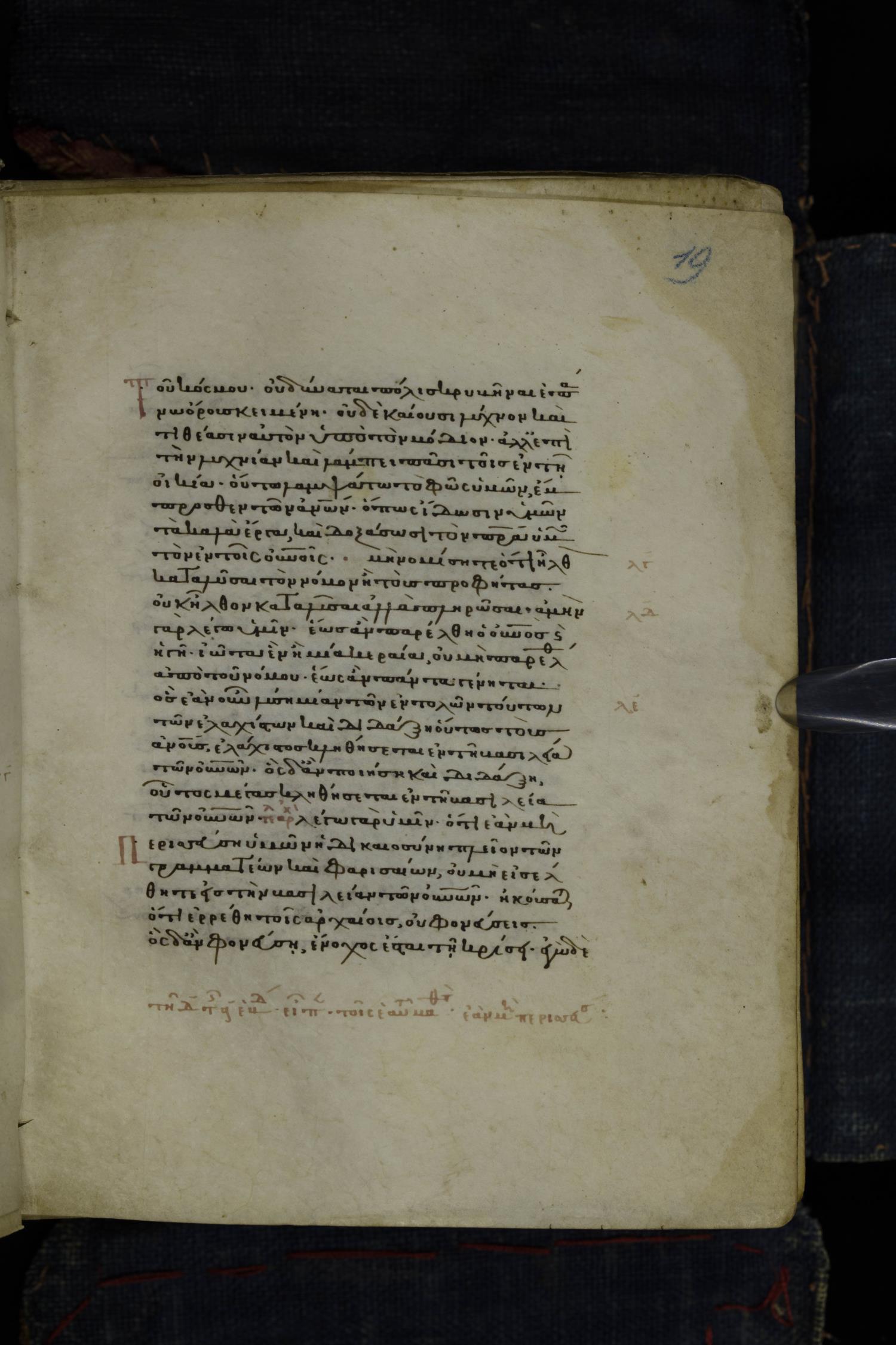 Thirteenth century minuscule of the Gospels on parchment; 223 leaves, 1 column, 24 lines per column. Images were taken at the National Library of Greece in Athens.