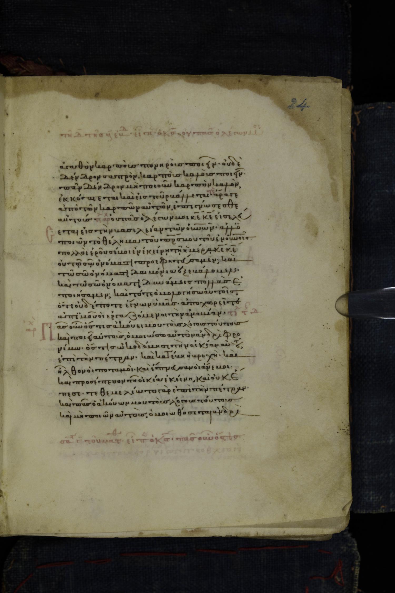 Thirteenth century minuscule of the Gospels on parchment; 223 leaves, 1 column, 24 lines per column. Images were taken at the National Library of Greece in Athens.
