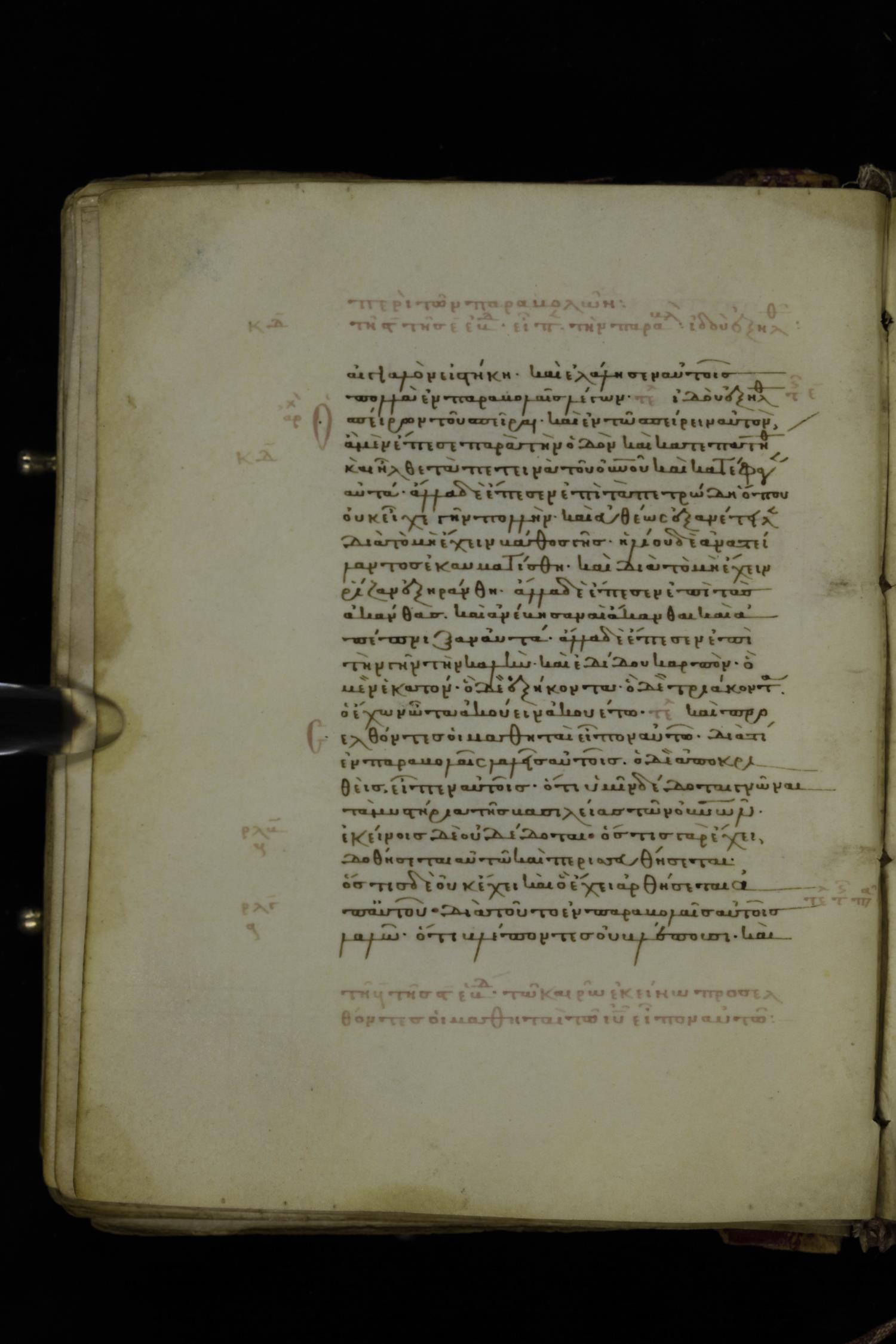 Thirteenth century minuscule of the Gospels on parchment; 223 leaves, 1 column, 24 lines per column. Images were taken at the National Library of Greece in Athens.
