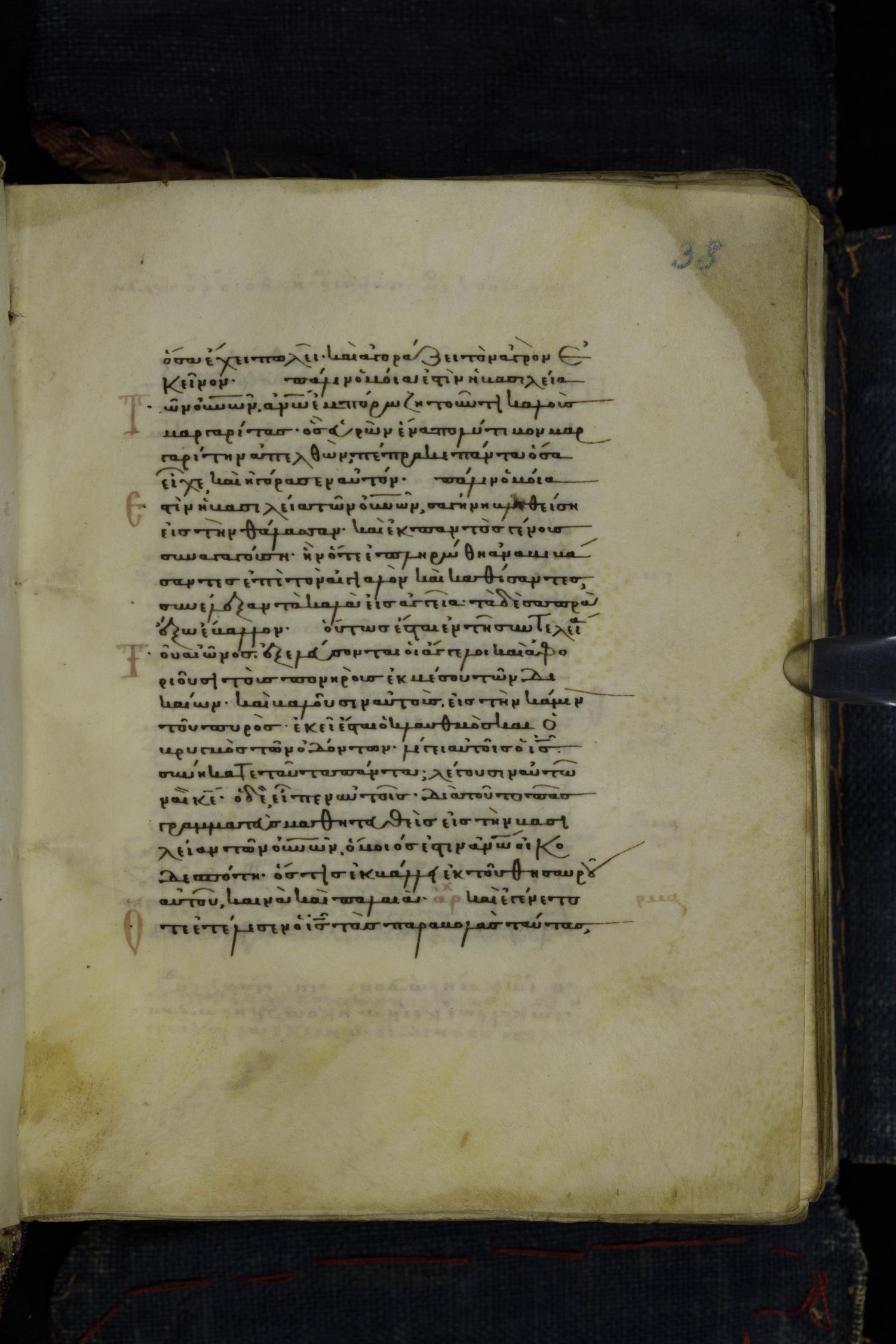 Thirteenth century minuscule of the Gospels on parchment; 223 leaves, 1 column, 24 lines per column. Images were taken at the National Library of Greece in Athens.