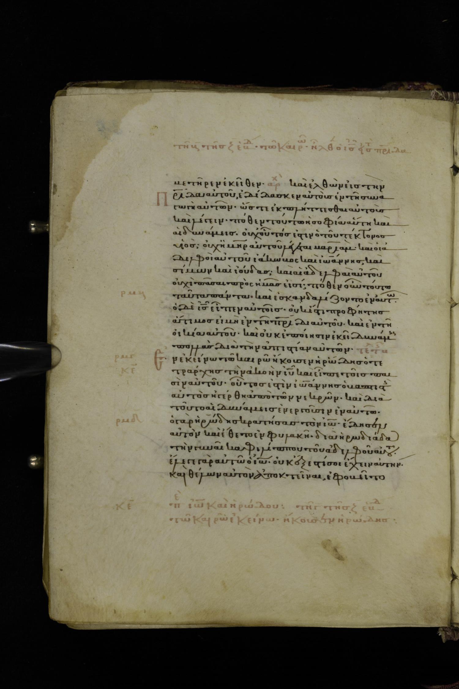 Thirteenth century minuscule of the Gospels on parchment; 223 leaves, 1 column, 24 lines per column. Images were taken at the National Library of Greece in Athens.