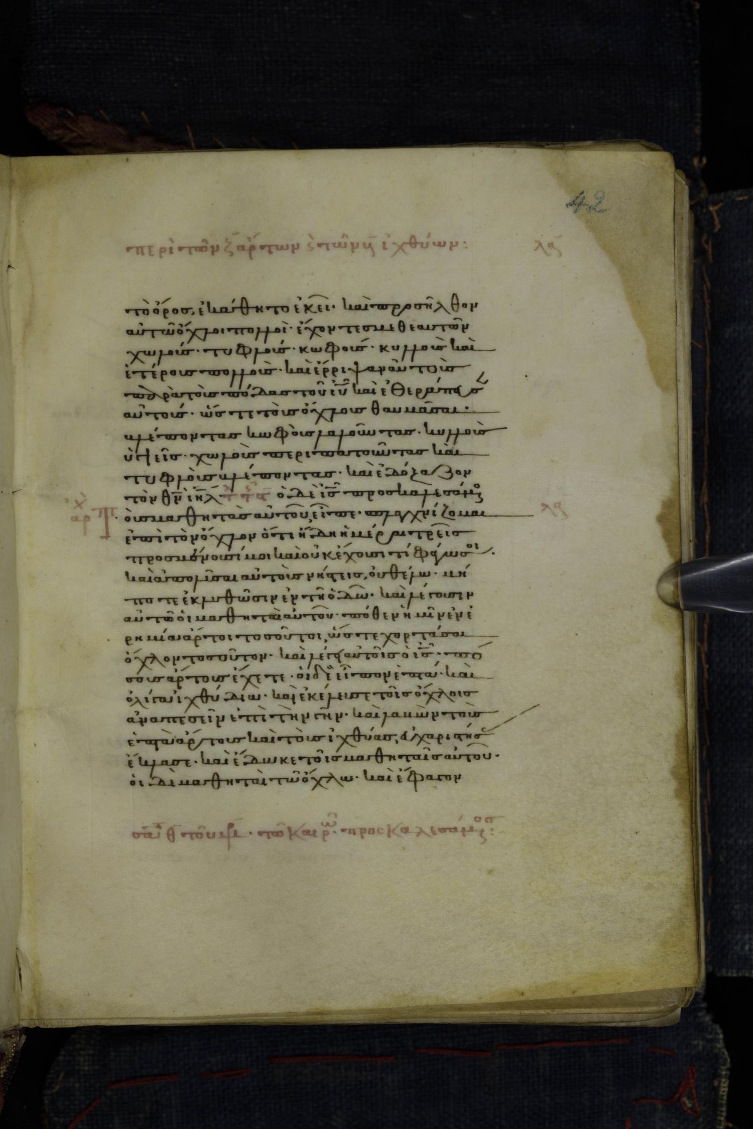 Thirteenth century minuscule of the Gospels on parchment; 223 leaves, 1 column, 24 lines per column. Images were taken at the National Library of Greece in Athens.