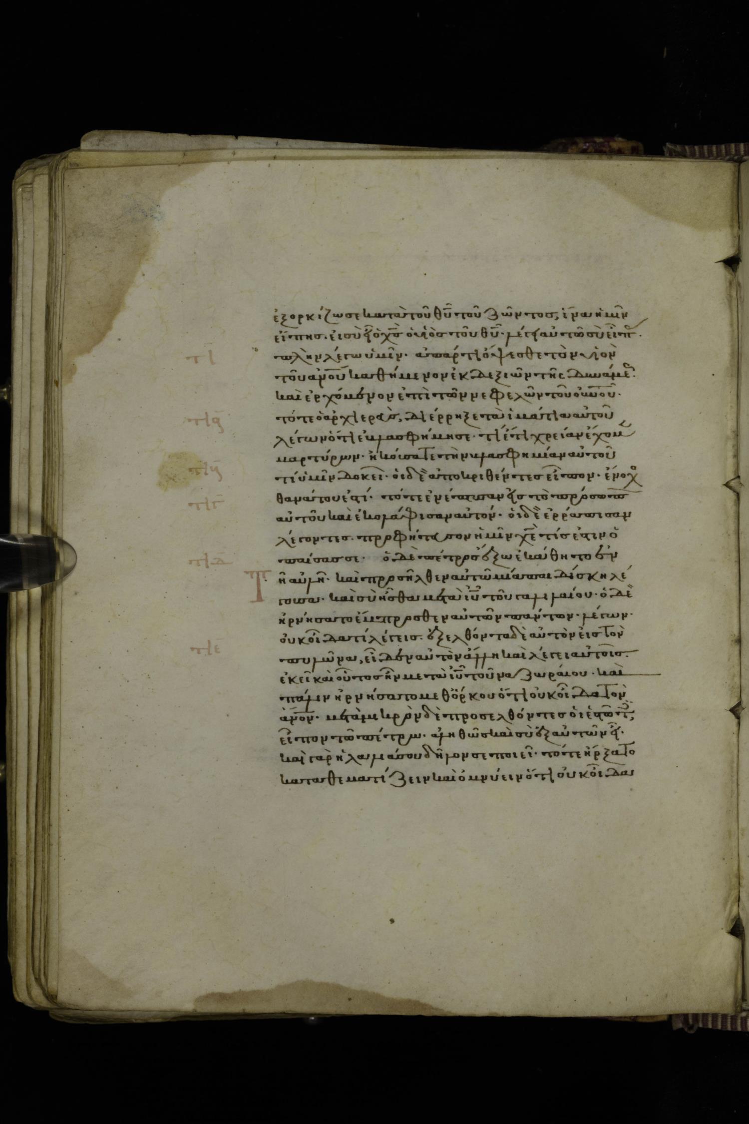 Thirteenth century minuscule of the Gospels on parchment; 223 leaves, 1 column, 24 lines per column. Images were taken at the National Library of Greece in Athens.