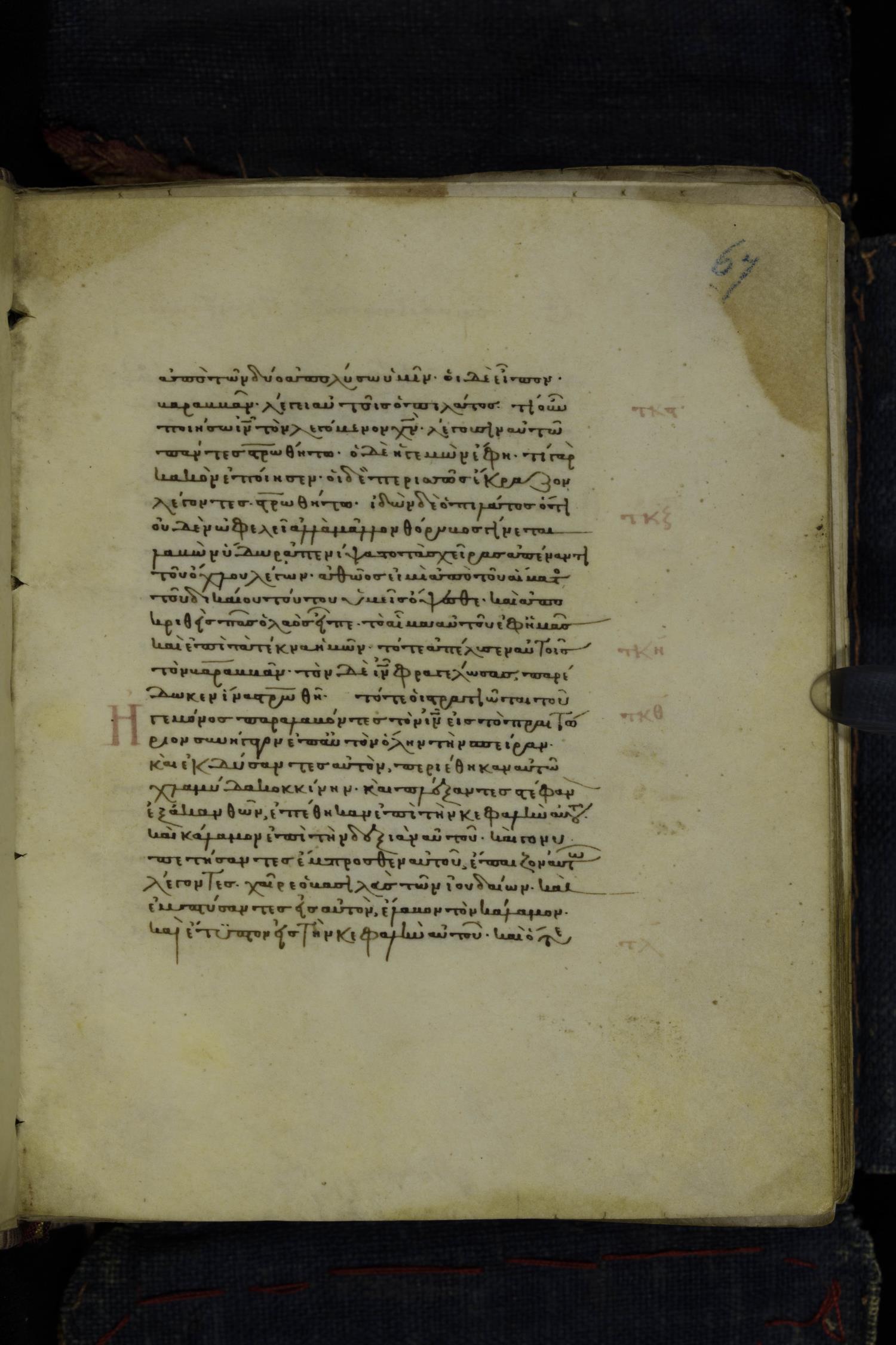 Thirteenth century minuscule of the Gospels on parchment; 223 leaves, 1 column, 24 lines per column. Images were taken at the National Library of Greece in Athens.