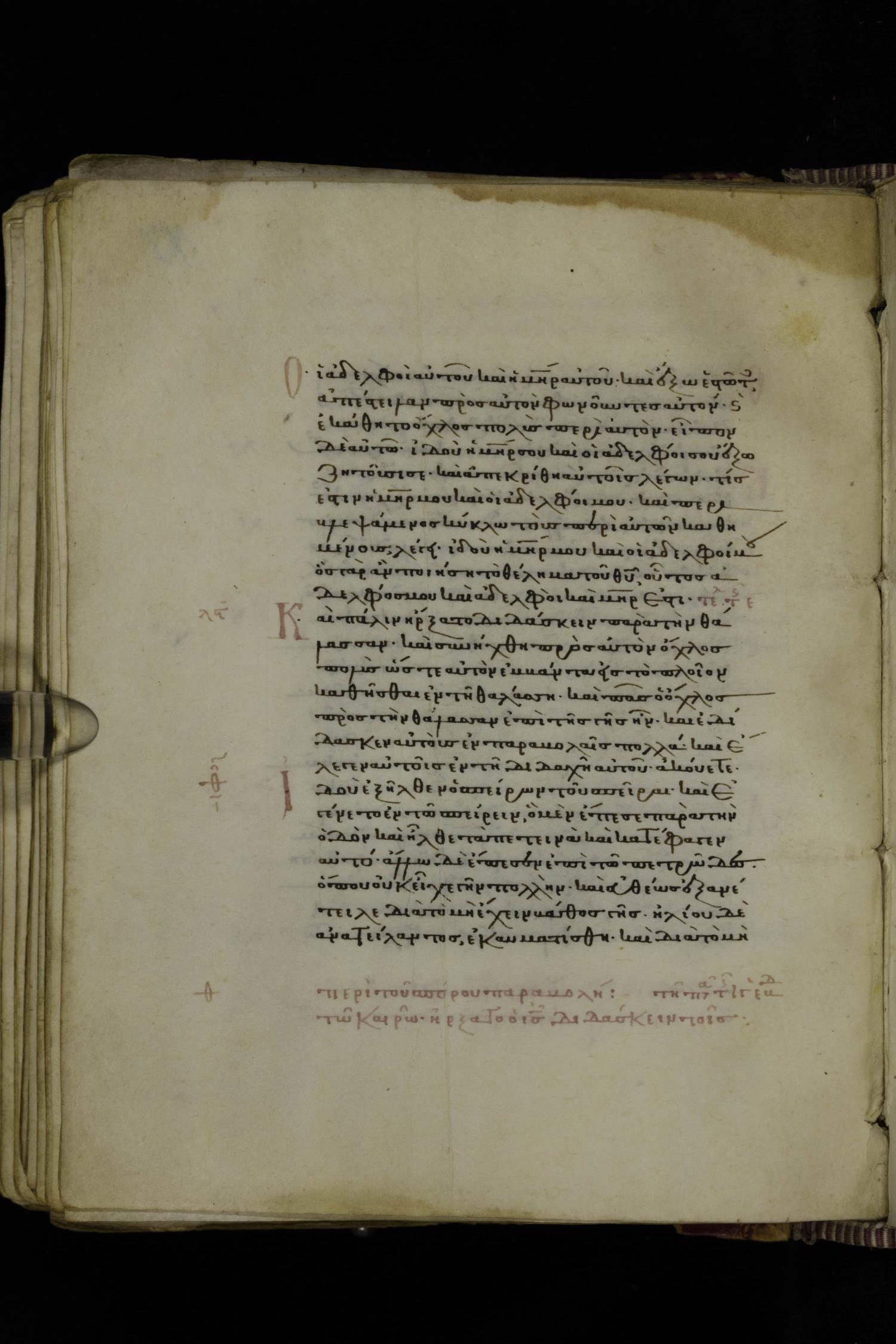 Thirteenth century minuscule of the Gospels on parchment; 223 leaves, 1 column, 24 lines per column. Images were taken at the National Library of Greece in Athens.