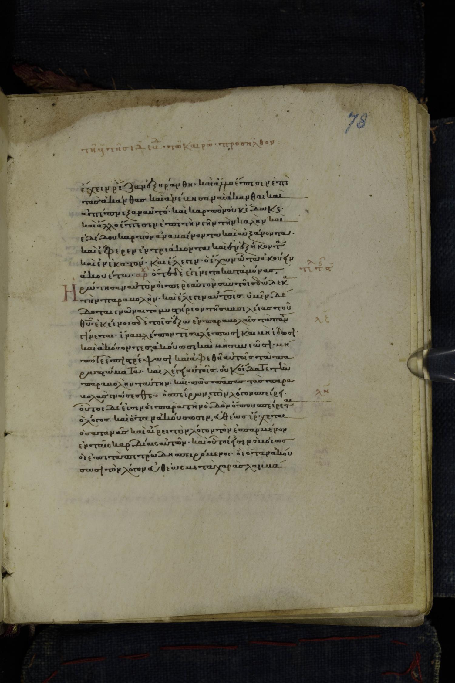 Thirteenth century minuscule of the Gospels on parchment; 223 leaves, 1 column, 24 lines per column. Images were taken at the National Library of Greece in Athens.