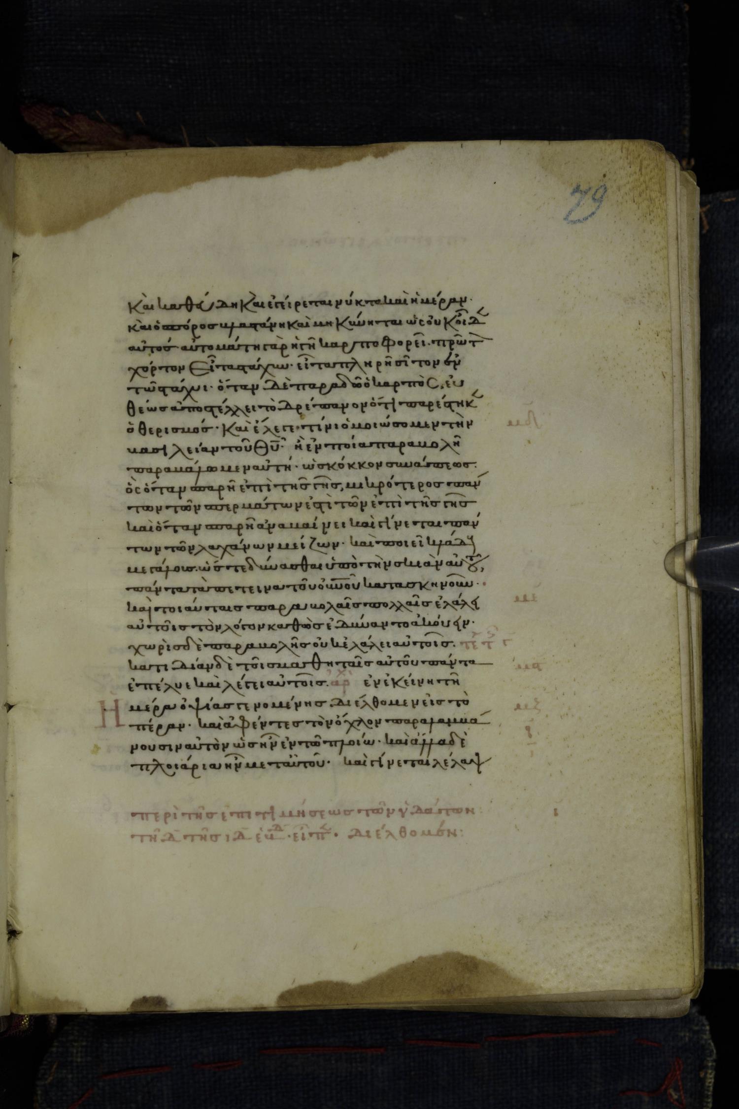 Thirteenth century minuscule of the Gospels on parchment; 223 leaves, 1 column, 24 lines per column. Images were taken at the National Library of Greece in Athens.