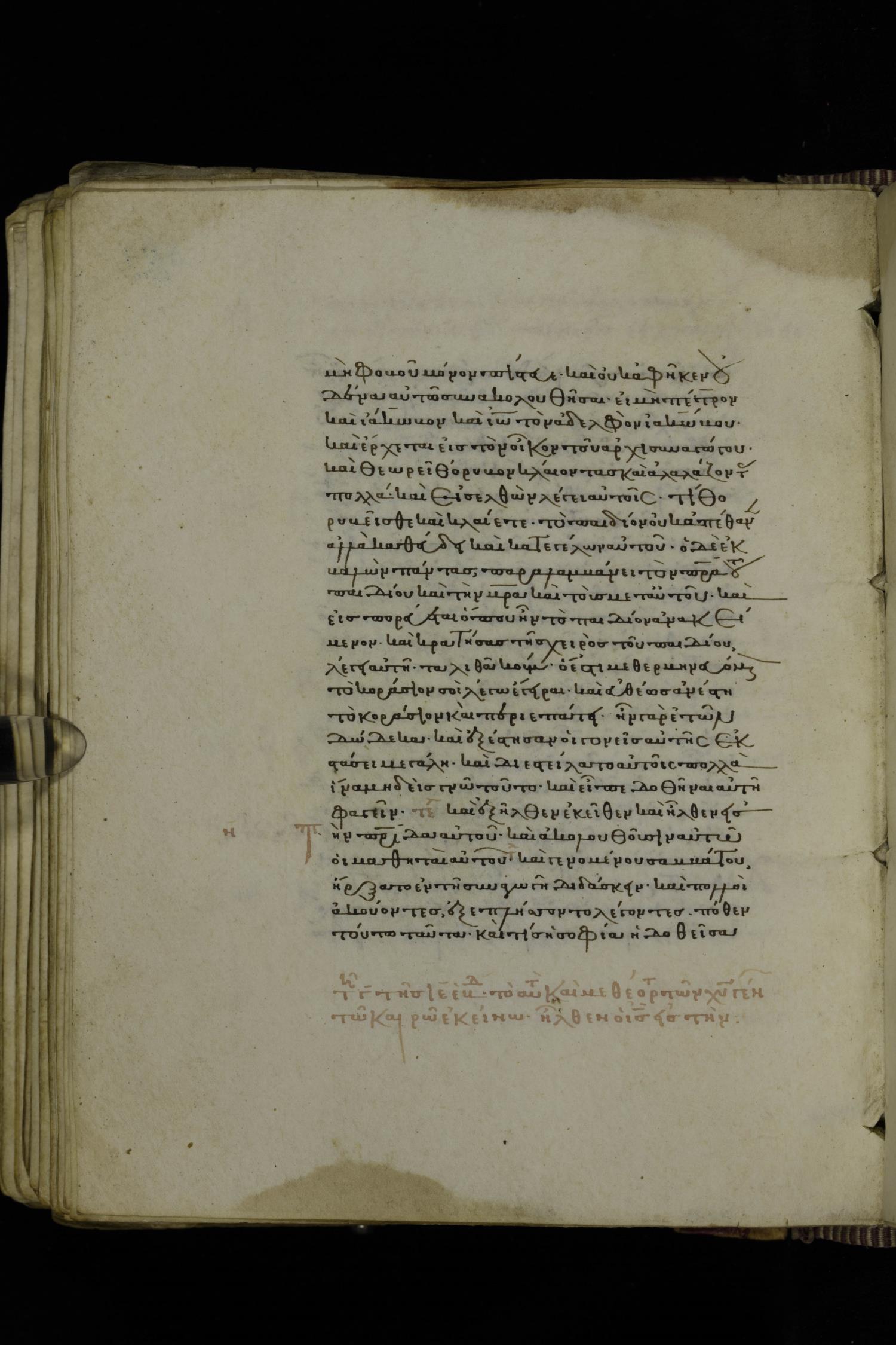 Thirteenth century minuscule of the Gospels on parchment; 223 leaves, 1 column, 24 lines per column. Images were taken at the National Library of Greece in Athens.