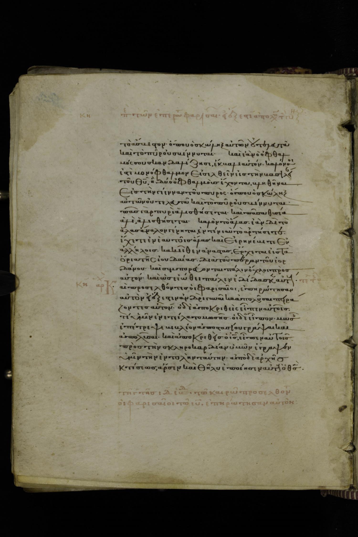 Thirteenth century minuscule of the Gospels on parchment; 223 leaves, 1 column, 24 lines per column. Images were taken at the National Library of Greece in Athens.