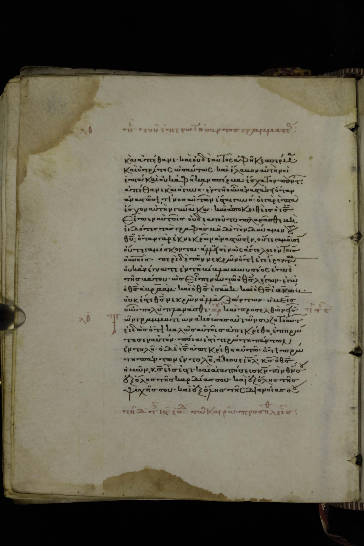 Thirteenth century minuscule of the Gospels on parchment; 223 leaves, 1 column, 24 lines per column. Images were taken at the National Library of Greece in Athens.