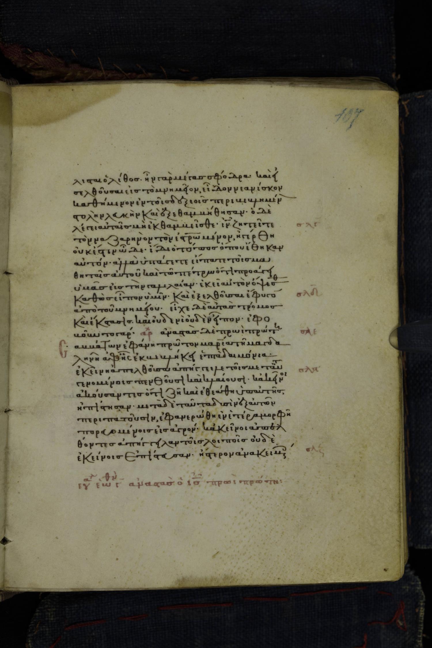 Thirteenth century minuscule of the Gospels on parchment; 223 leaves, 1 column, 24 lines per column. Images were taken at the National Library of Greece in Athens.