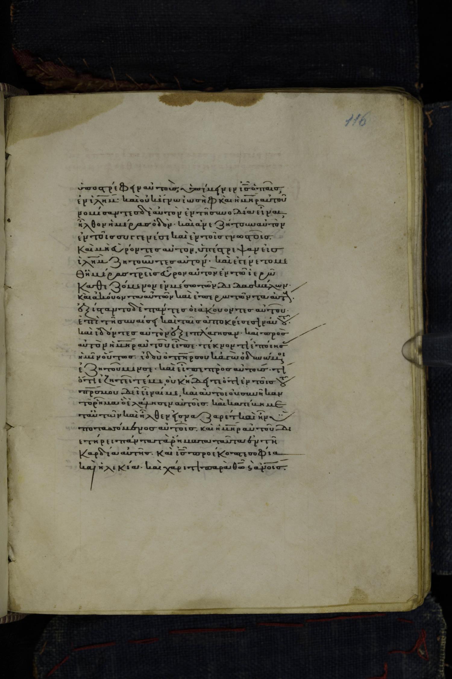 Thirteenth century minuscule of the Gospels on parchment; 223 leaves, 1 column, 24 lines per column. Images were taken at the National Library of Greece in Athens.