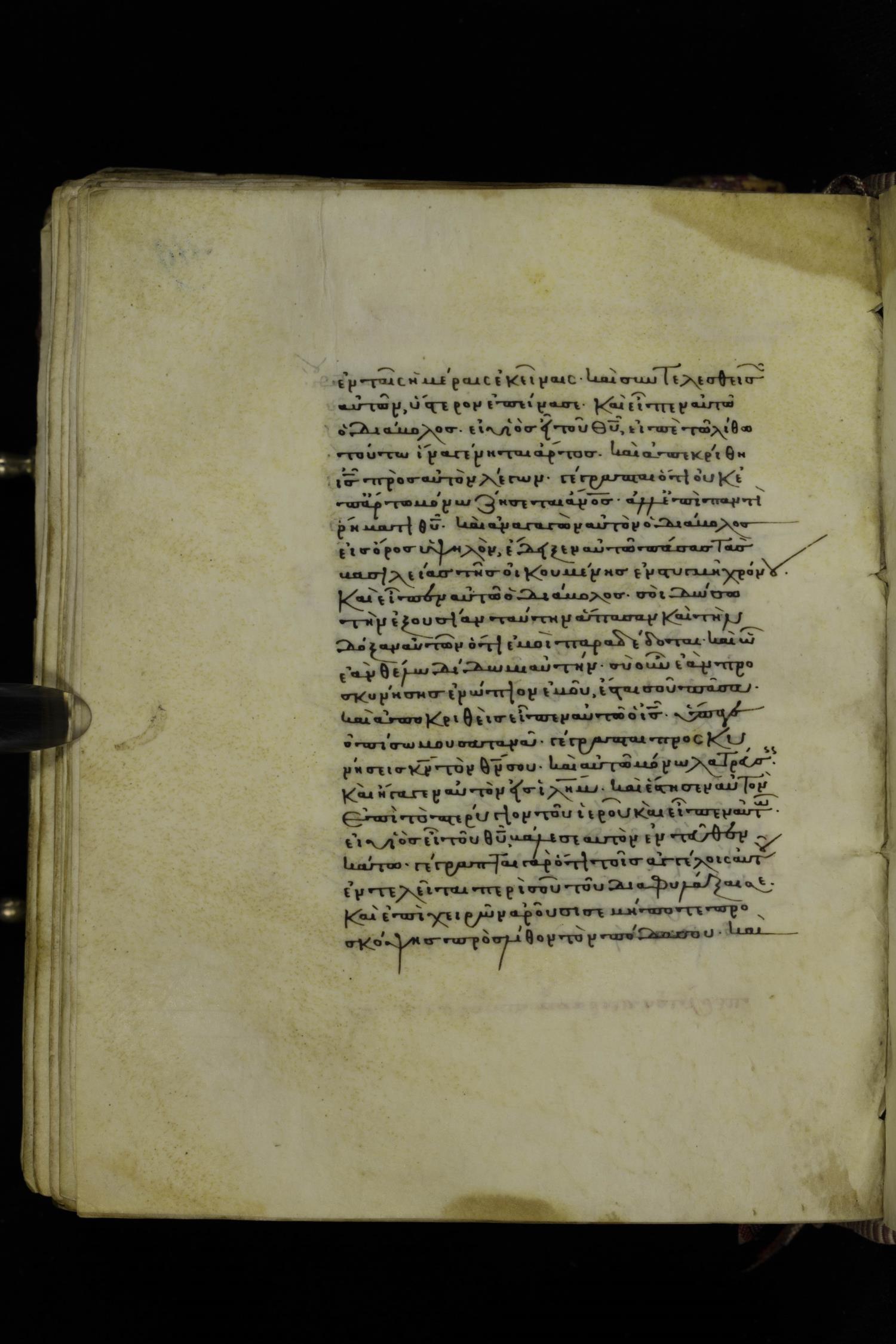 Thirteenth century minuscule of the Gospels on parchment; 223 leaves, 1 column, 24 lines per column. Images were taken at the National Library of Greece in Athens.