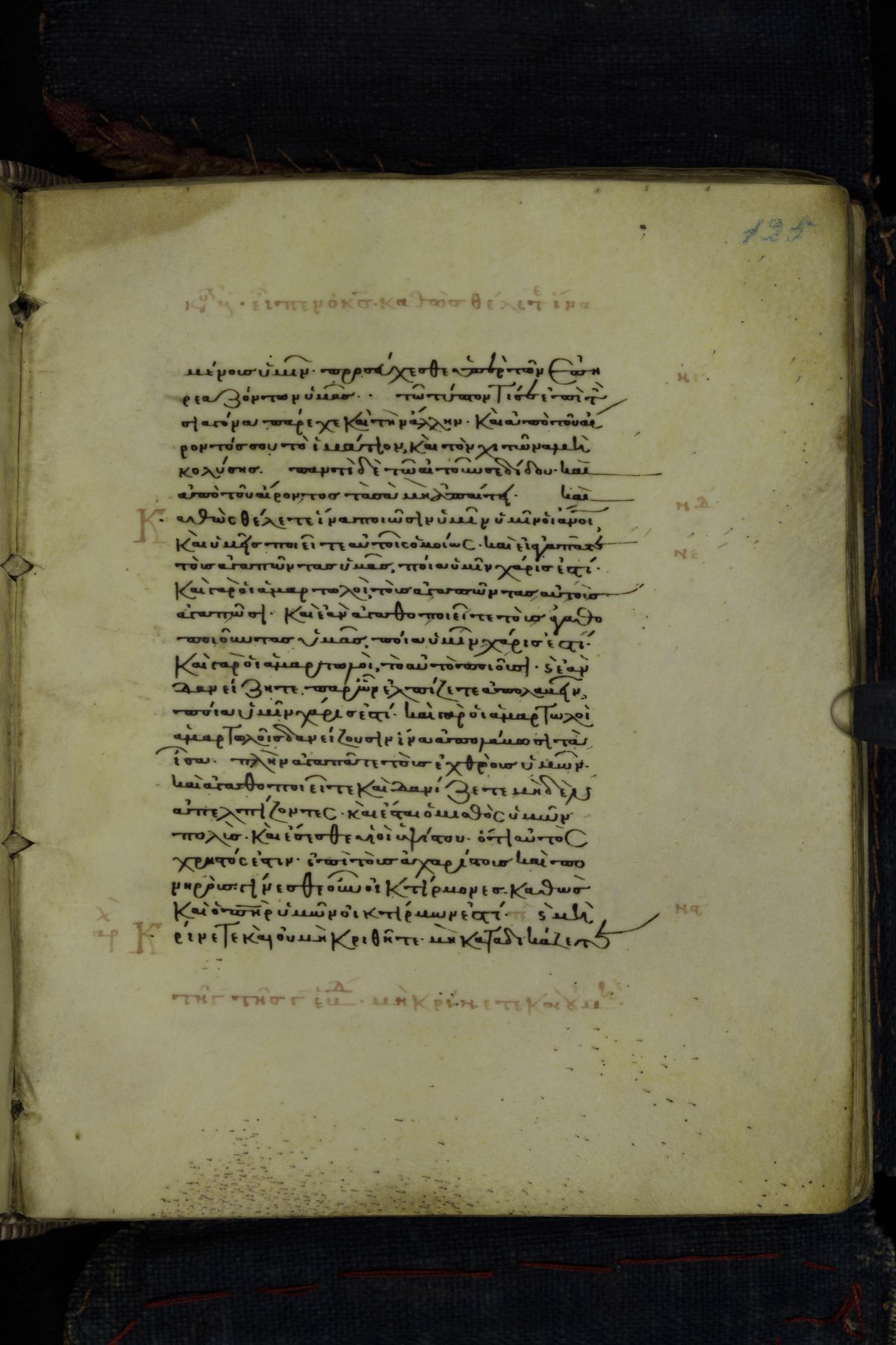 Thirteenth century minuscule of the Gospels on parchment; 223 leaves, 1 column, 24 lines per column. Images were taken at the National Library of Greece in Athens.