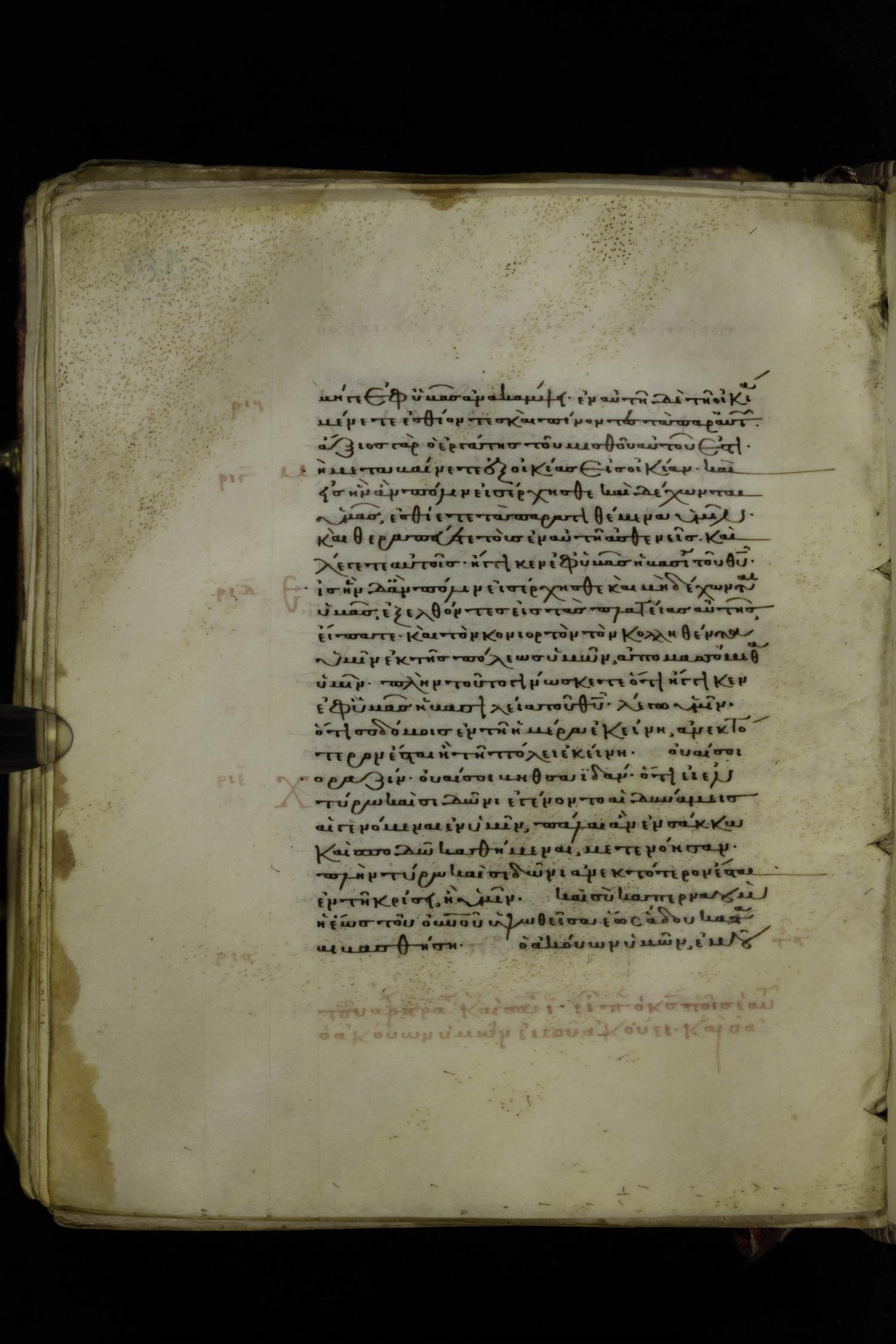 Thirteenth century minuscule of the Gospels on parchment; 223 leaves, 1 column, 24 lines per column. Images were taken at the National Library of Greece in Athens.
