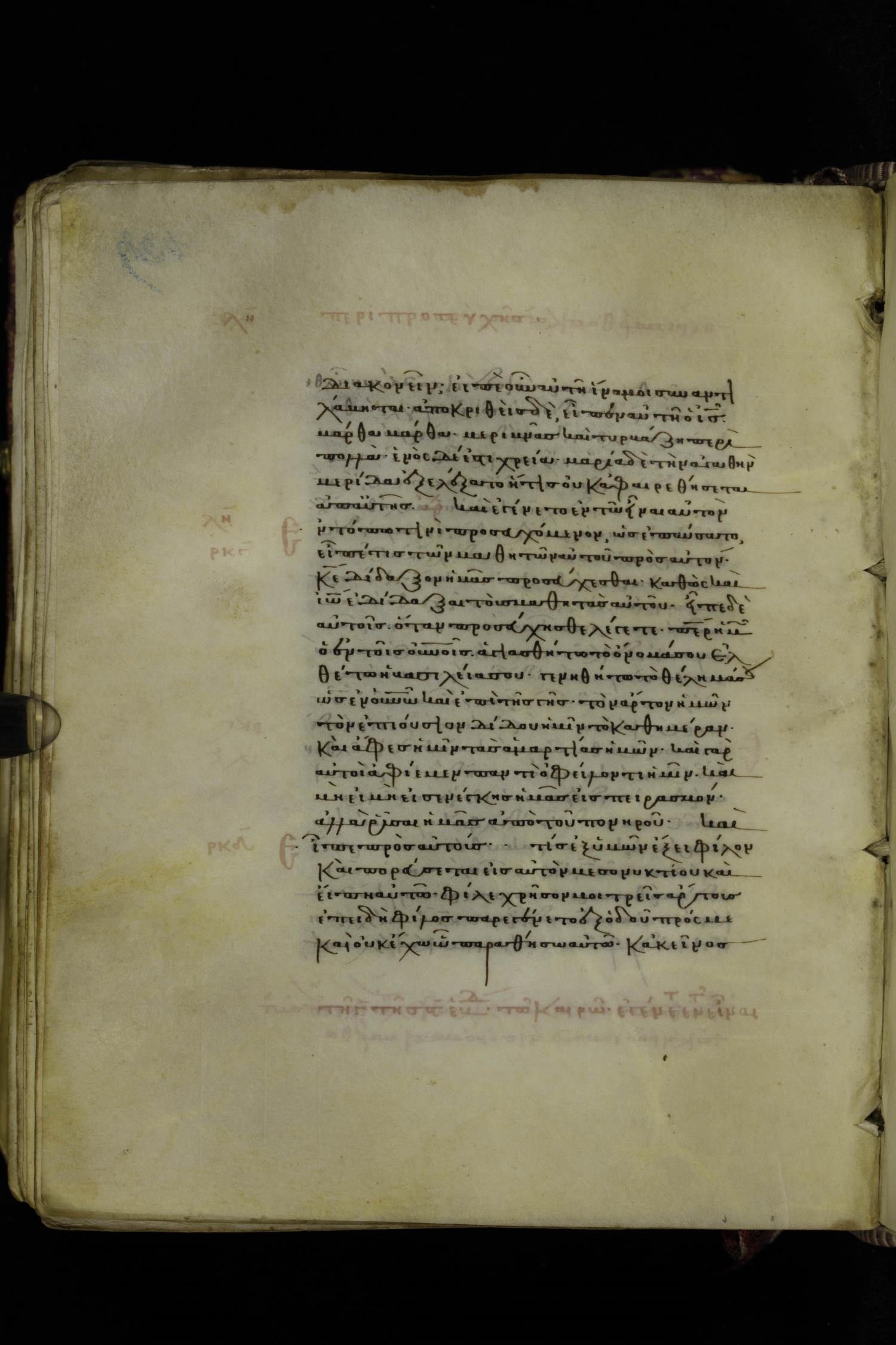 Thirteenth century minuscule of the Gospels on parchment; 223 leaves, 1 column, 24 lines per column. Images were taken at the National Library of Greece in Athens.