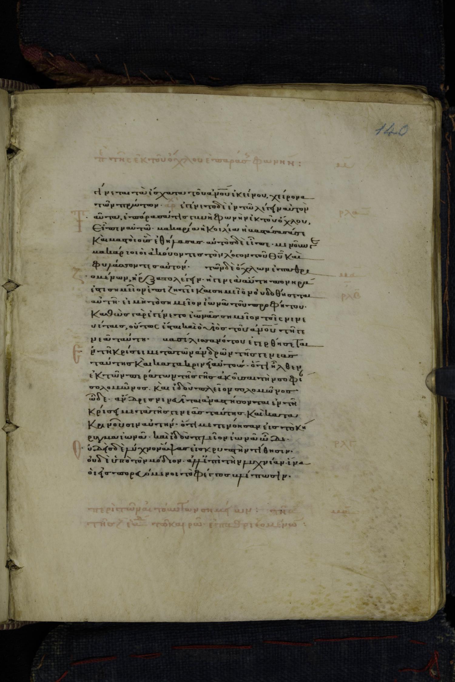 Thirteenth century minuscule of the Gospels on parchment; 223 leaves, 1 column, 24 lines per column. Images were taken at the National Library of Greece in Athens.