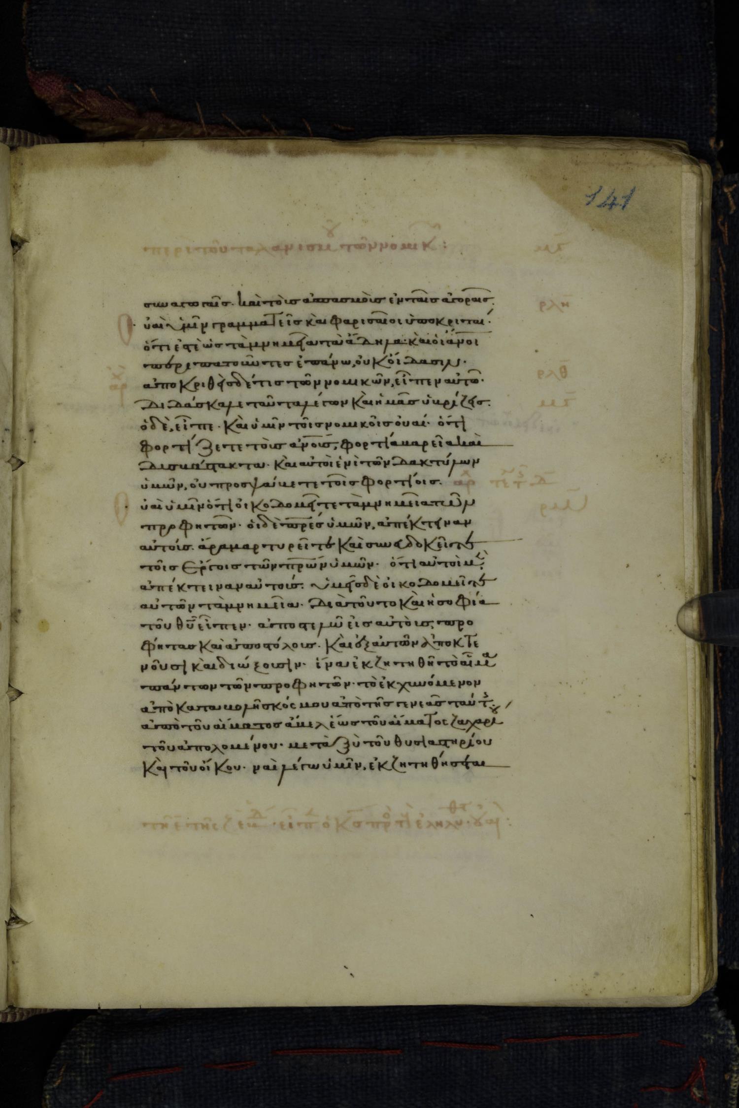Thirteenth century minuscule of the Gospels on parchment; 223 leaves, 1 column, 24 lines per column. Images were taken at the National Library of Greece in Athens.