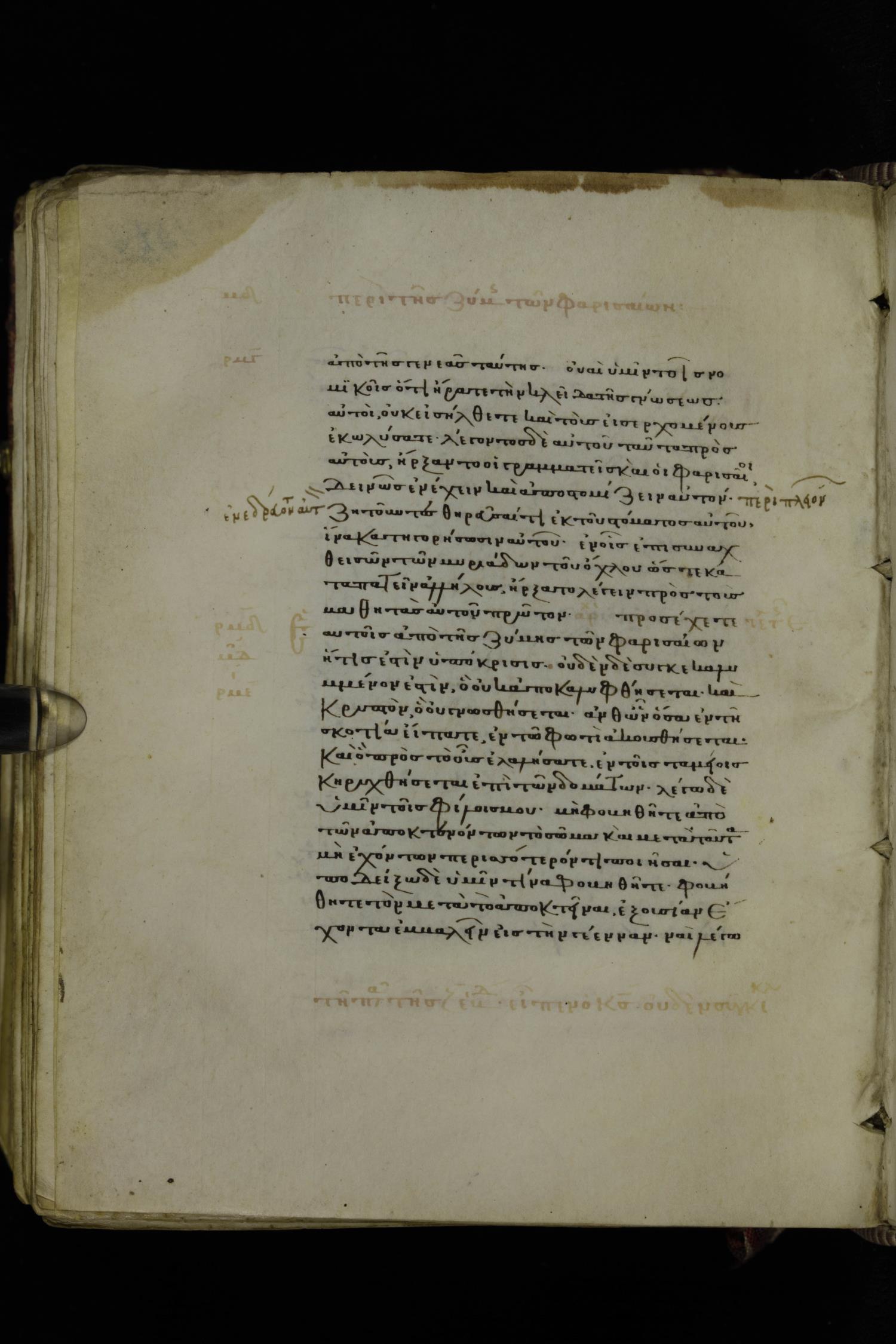 Thirteenth century minuscule of the Gospels on parchment; 223 leaves, 1 column, 24 lines per column. Images were taken at the National Library of Greece in Athens.