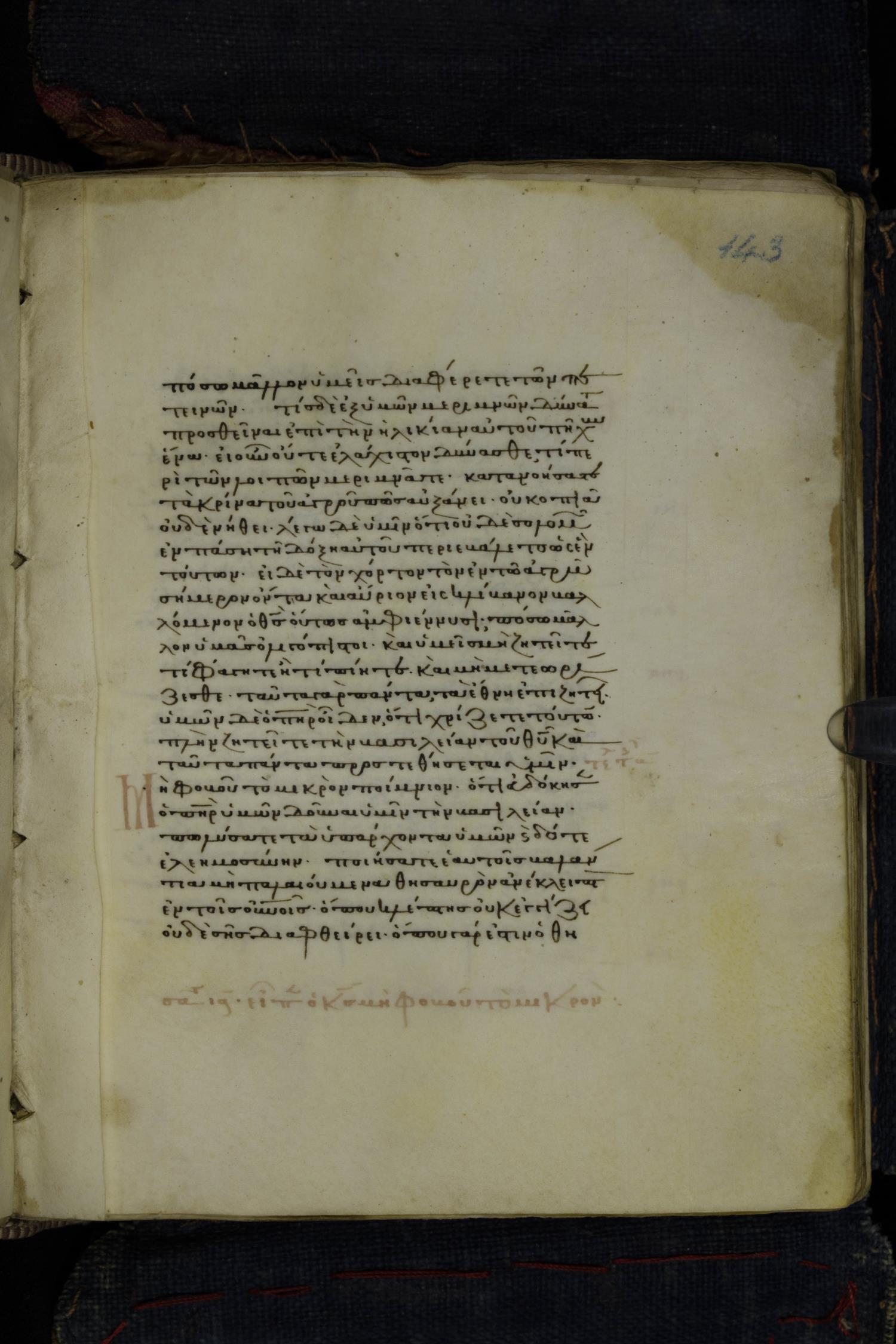 Thirteenth century minuscule of the Gospels on parchment; 223 leaves, 1 column, 24 lines per column. Images were taken at the National Library of Greece in Athens.
