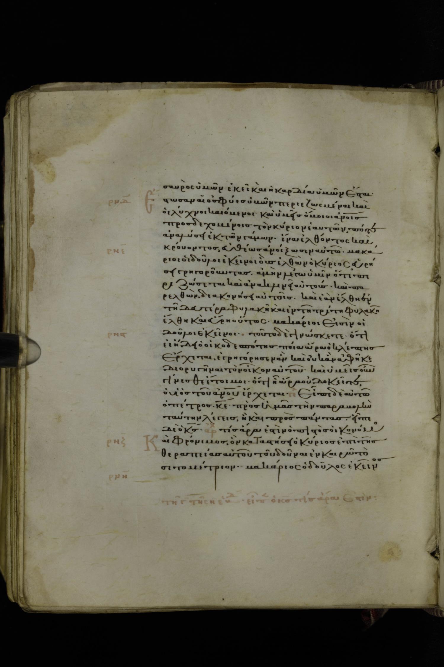 Thirteenth century minuscule of the Gospels on parchment; 223 leaves, 1 column, 24 lines per column. Images were taken at the National Library of Greece in Athens.