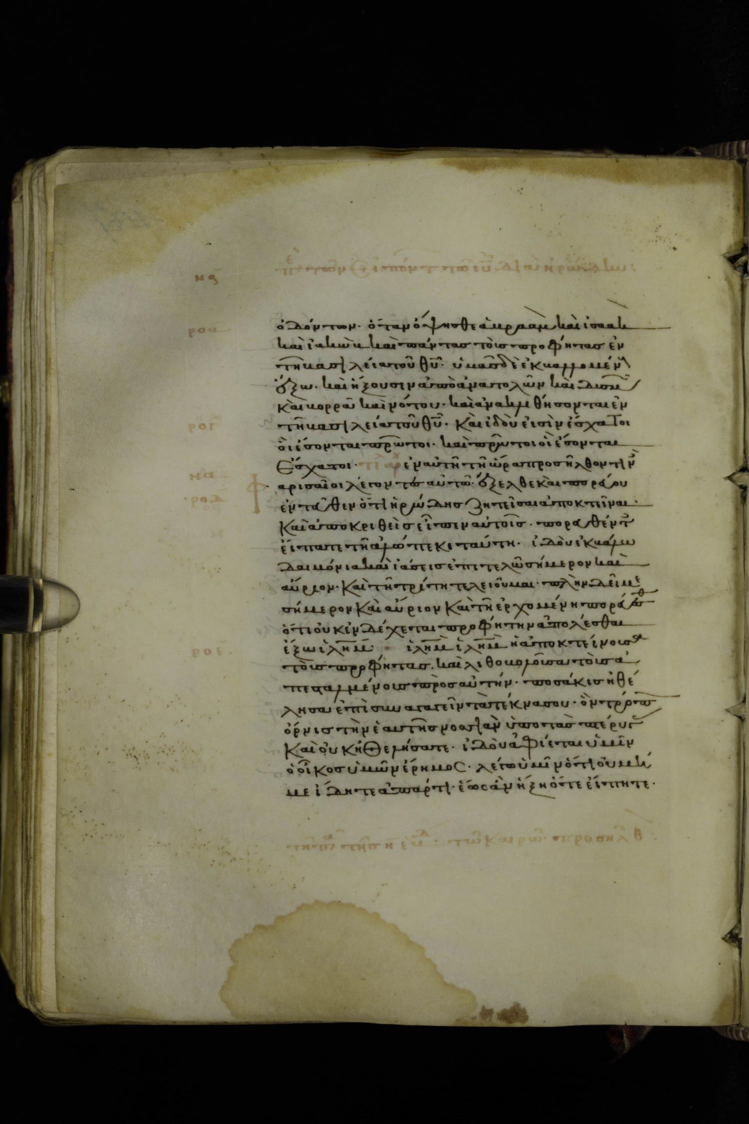 Thirteenth century minuscule of the Gospels on parchment; 223 leaves, 1 column, 24 lines per column. Images were taken at the National Library of Greece in Athens.