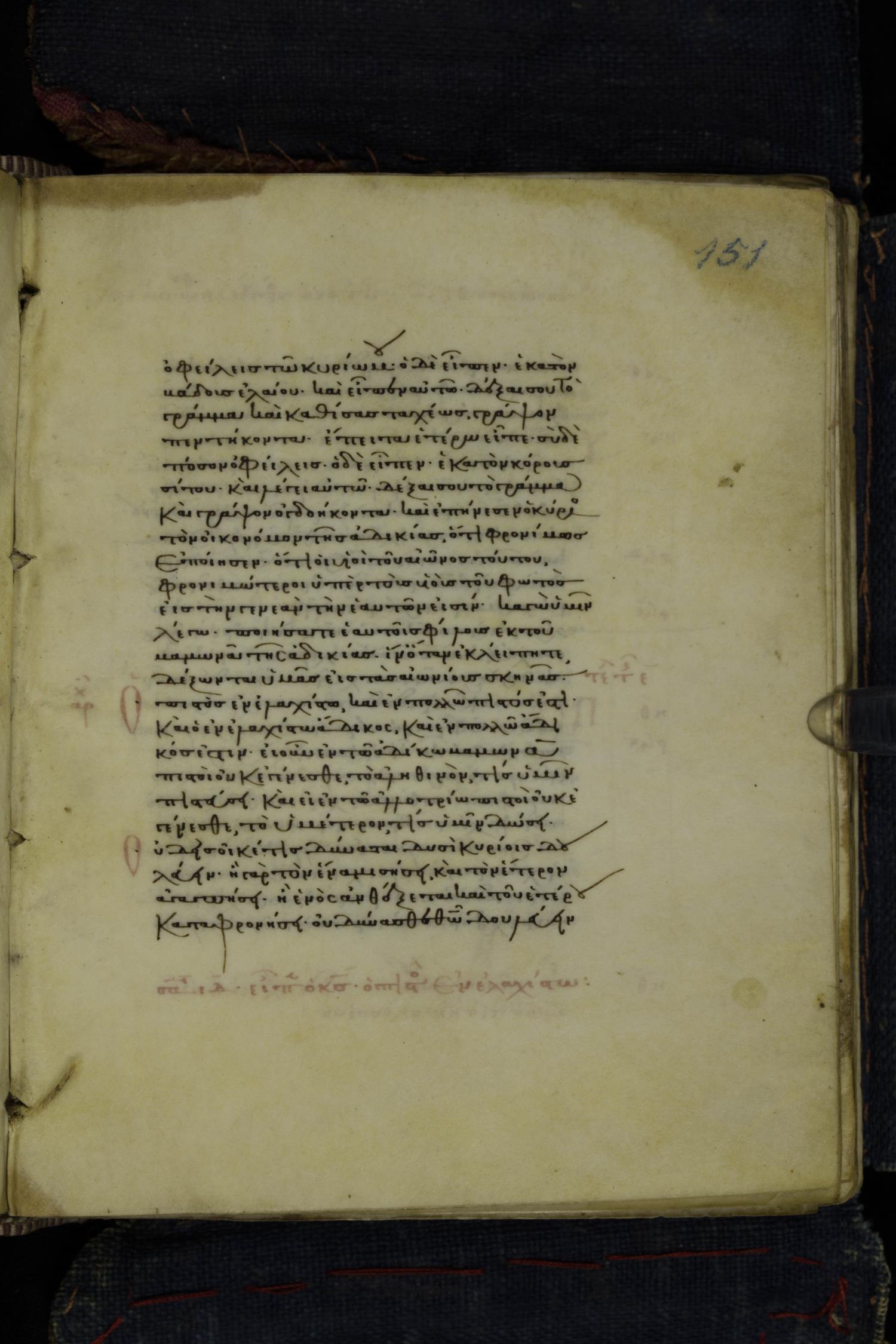 Thirteenth century minuscule of the Gospels on parchment; 223 leaves, 1 column, 24 lines per column. Images were taken at the National Library of Greece in Athens.