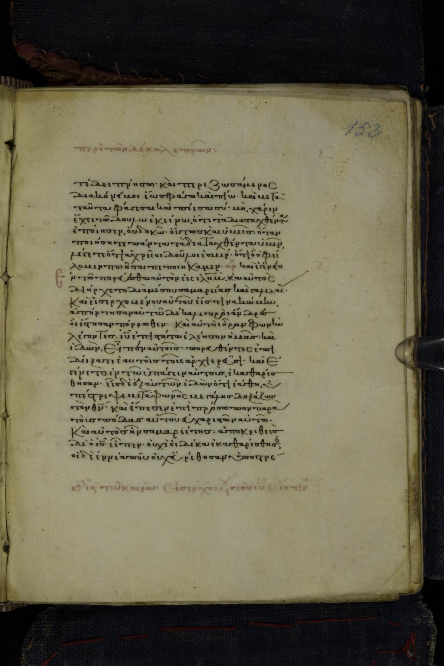 Thirteenth century minuscule of the Gospels on parchment; 223 leaves, 1 column, 24 lines per column. Images were taken at the National Library of Greece in Athens.