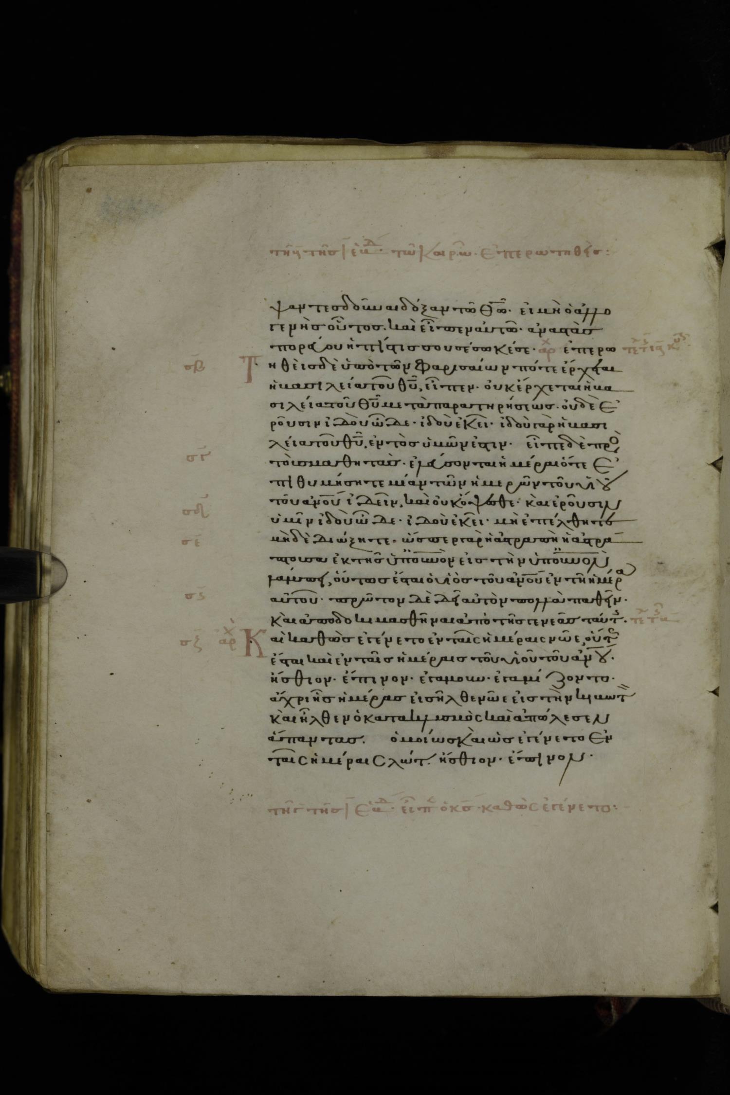 Thirteenth century minuscule of the Gospels on parchment; 223 leaves, 1 column, 24 lines per column. Images were taken at the National Library of Greece in Athens.