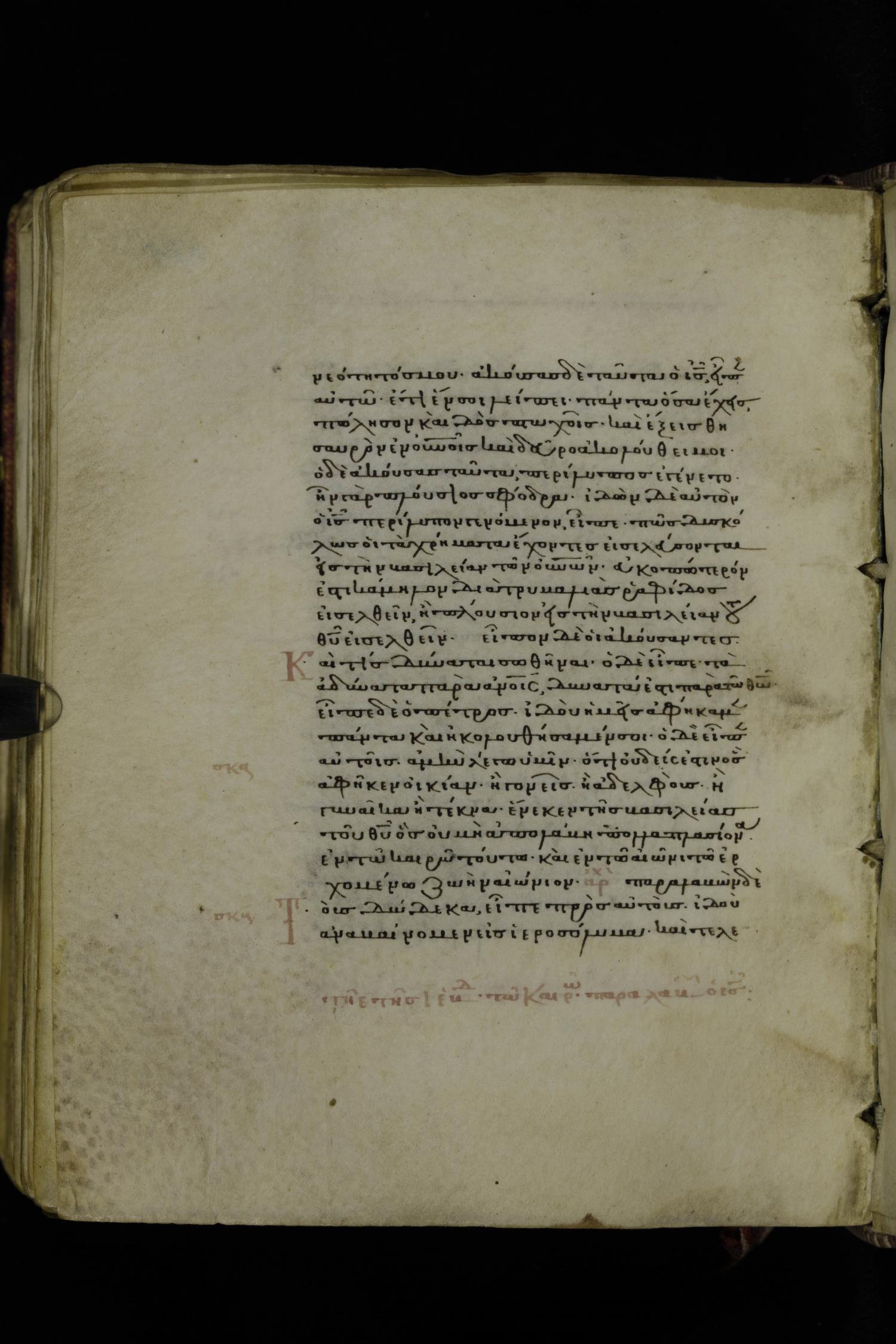 Thirteenth century minuscule of the Gospels on parchment; 223 leaves, 1 column, 24 lines per column. Images were taken at the National Library of Greece in Athens.