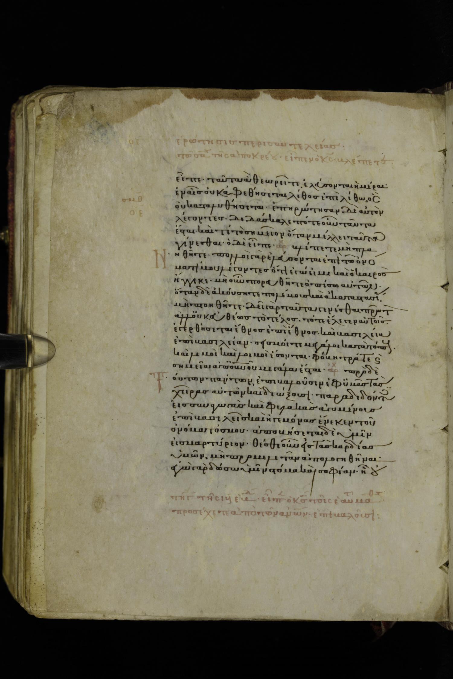 Thirteenth century minuscule of the Gospels on parchment; 223 leaves, 1 column, 24 lines per column. Images were taken at the National Library of Greece in Athens.