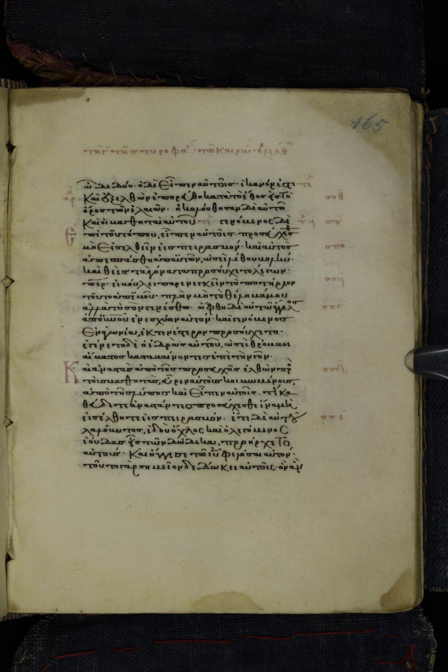 Thirteenth century minuscule of the Gospels on parchment; 223 leaves, 1 column, 24 lines per column. Images were taken at the National Library of Greece in Athens.