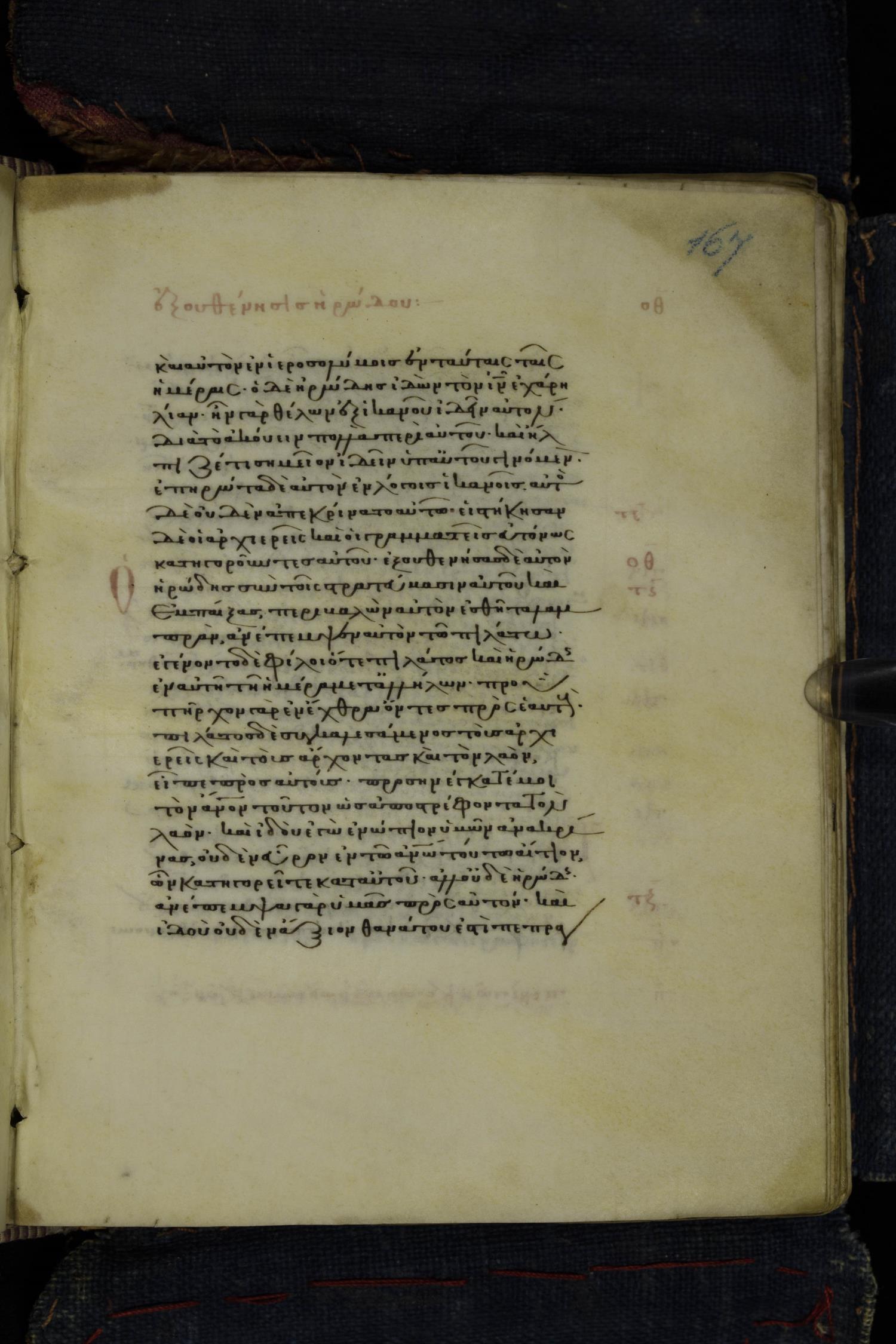 Thirteenth century minuscule of the Gospels on parchment; 223 leaves, 1 column, 24 lines per column. Images were taken at the National Library of Greece in Athens.