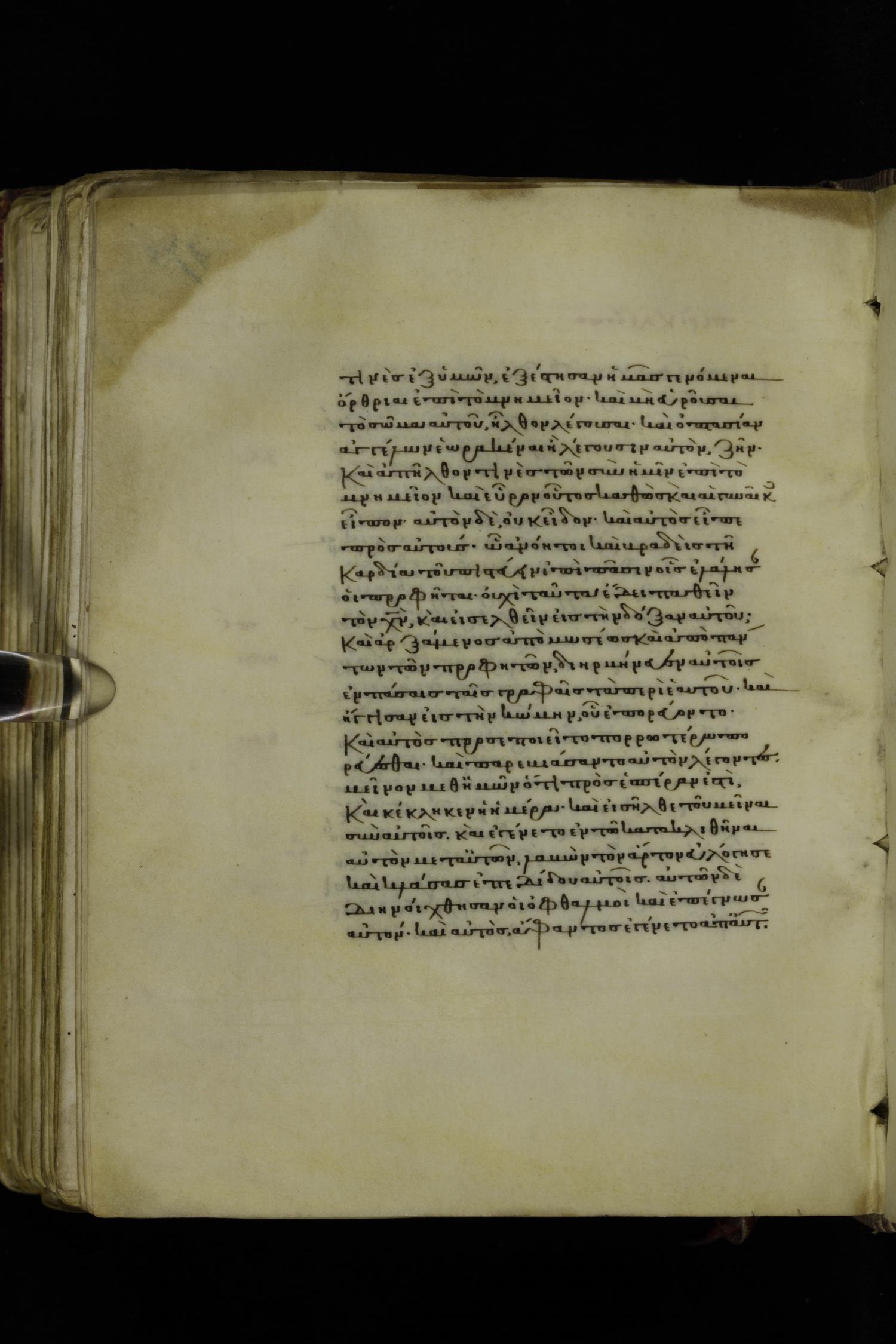 Thirteenth century minuscule of the Gospels on parchment; 223 leaves, 1 column, 24 lines per column. Images were taken at the National Library of Greece in Athens.