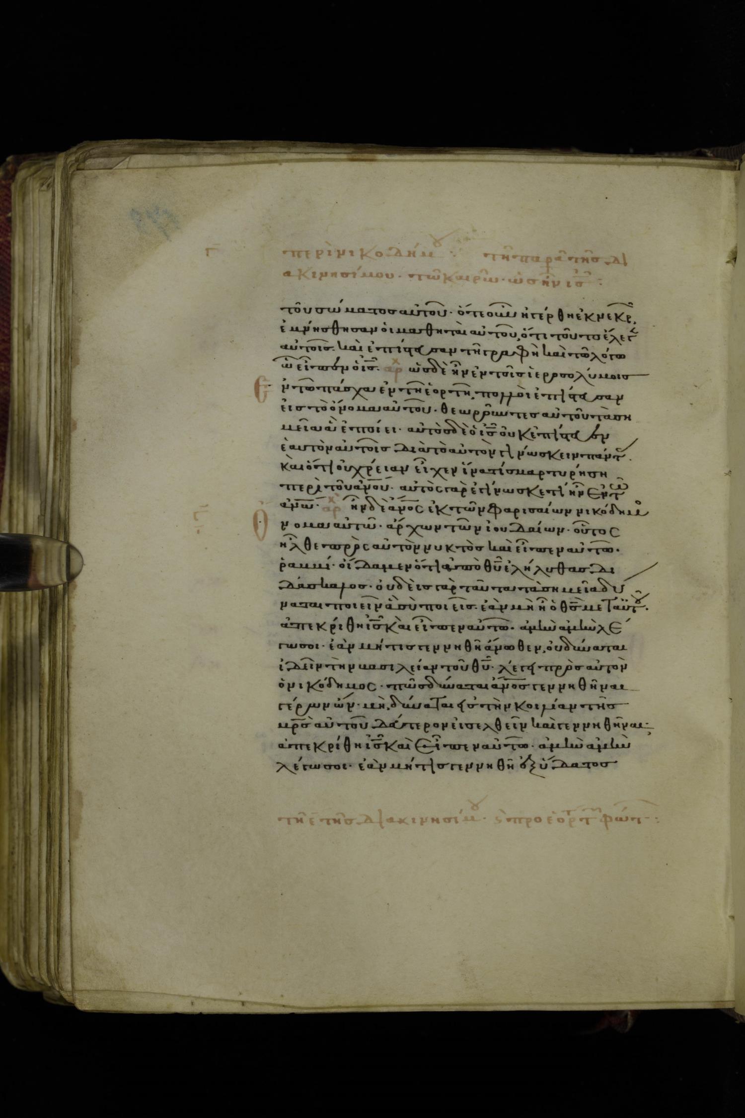 Thirteenth century minuscule of the Gospels on parchment; 223 leaves, 1 column, 24 lines per column. Images were taken at the National Library of Greece in Athens.