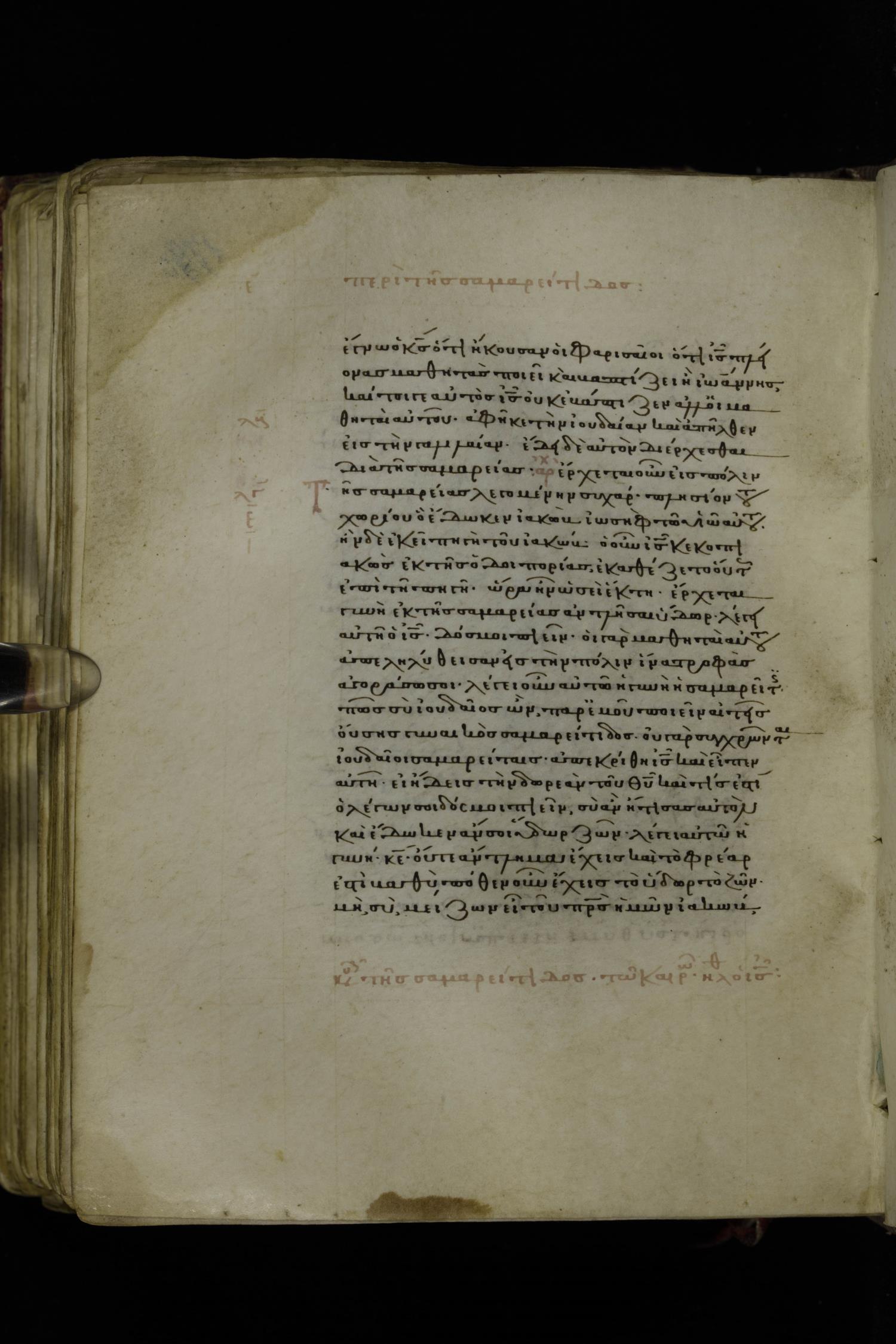 Thirteenth century minuscule of the Gospels on parchment; 223 leaves, 1 column, 24 lines per column. Images were taken at the National Library of Greece in Athens.