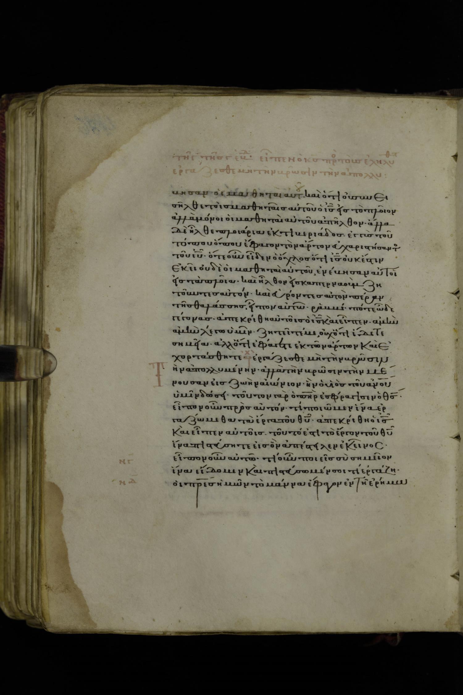 Thirteenth century minuscule of the Gospels on parchment; 223 leaves, 1 column, 24 lines per column. Images were taken at the National Library of Greece in Athens.