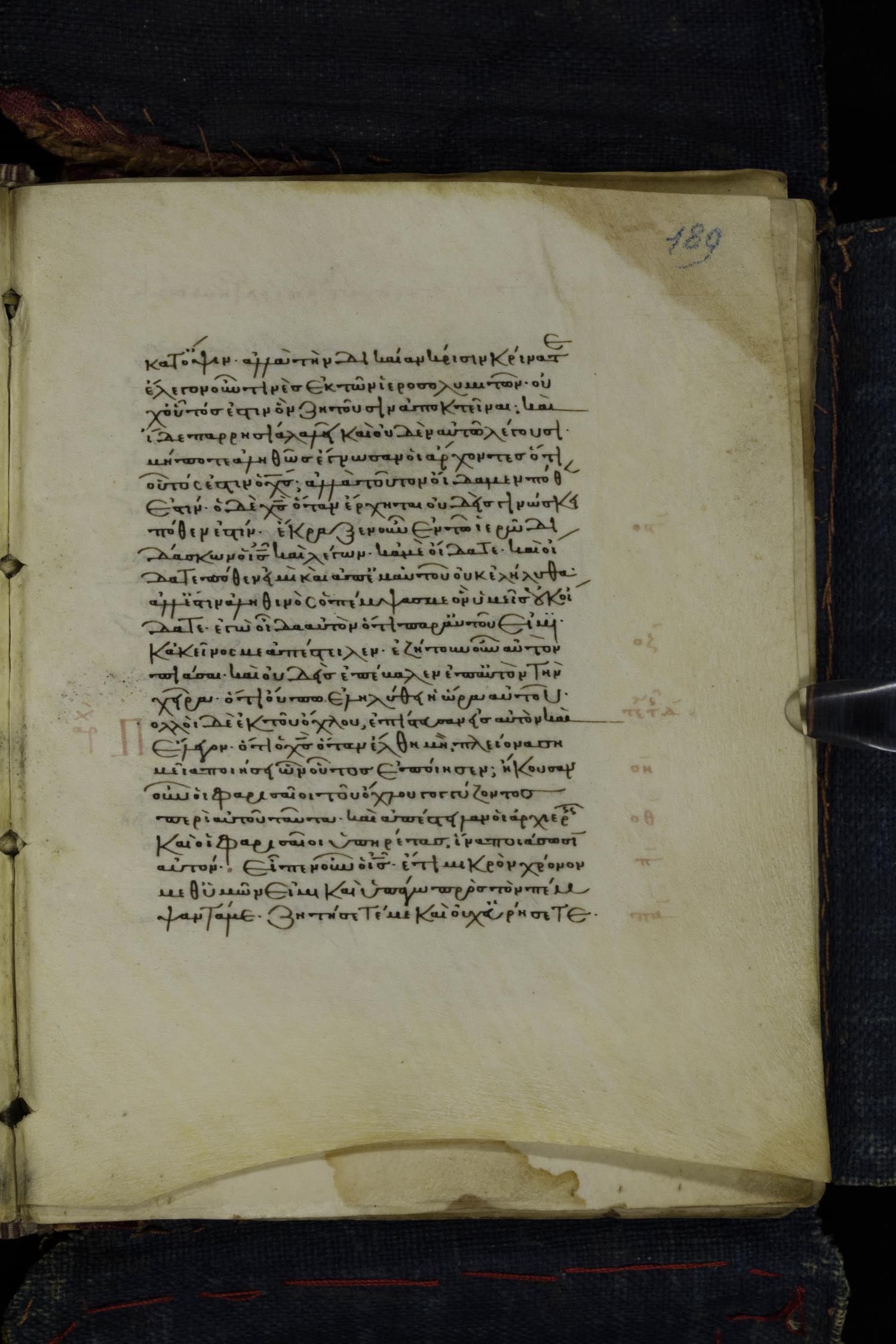 Thirteenth century minuscule of the Gospels on parchment; 223 leaves, 1 column, 24 lines per column. Images were taken at the National Library of Greece in Athens.