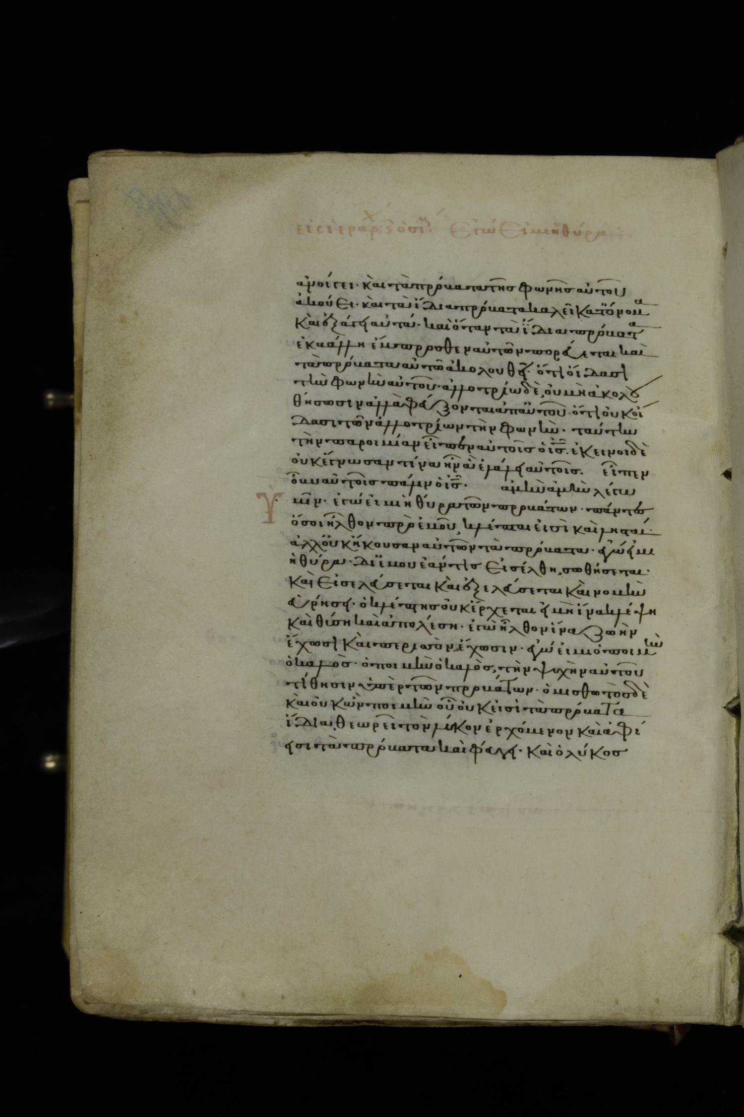 Thirteenth century minuscule of the Gospels on parchment; 223 leaves, 1 column, 24 lines per column. Images were taken at the National Library of Greece in Athens.