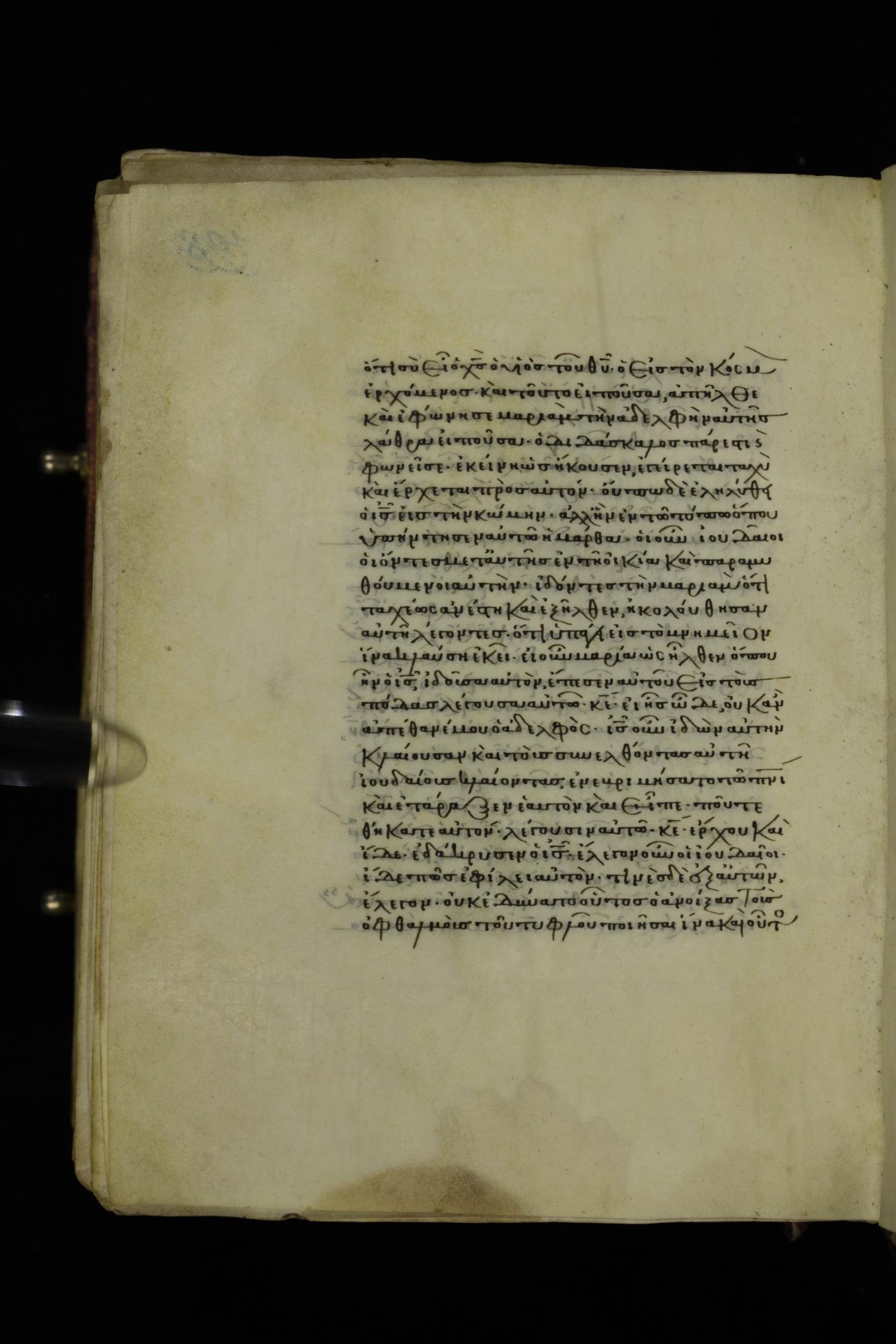 Thirteenth century minuscule of the Gospels on parchment; 223 leaves, 1 column, 24 lines per column. Images were taken at the National Library of Greece in Athens.